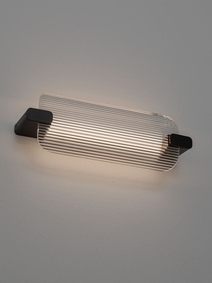 Lampa została wyposażona w zintegrowany moduł LED o mocy 13 W, emitujący strumień świetlny na poziomie 711 lumenów. Światło o ciepłej barwie (3000 K) przebija się przez pionowe żłobienia szkła, tworząc na ścianie subtelne refleksy i budując nastrojową atmosferę. Dzięki liniowej formie i smukłej sylwetce, kinkiet prezentuje się niezwykle lekko, stając się biżuteryjnym dopełnieniem aranżacji.