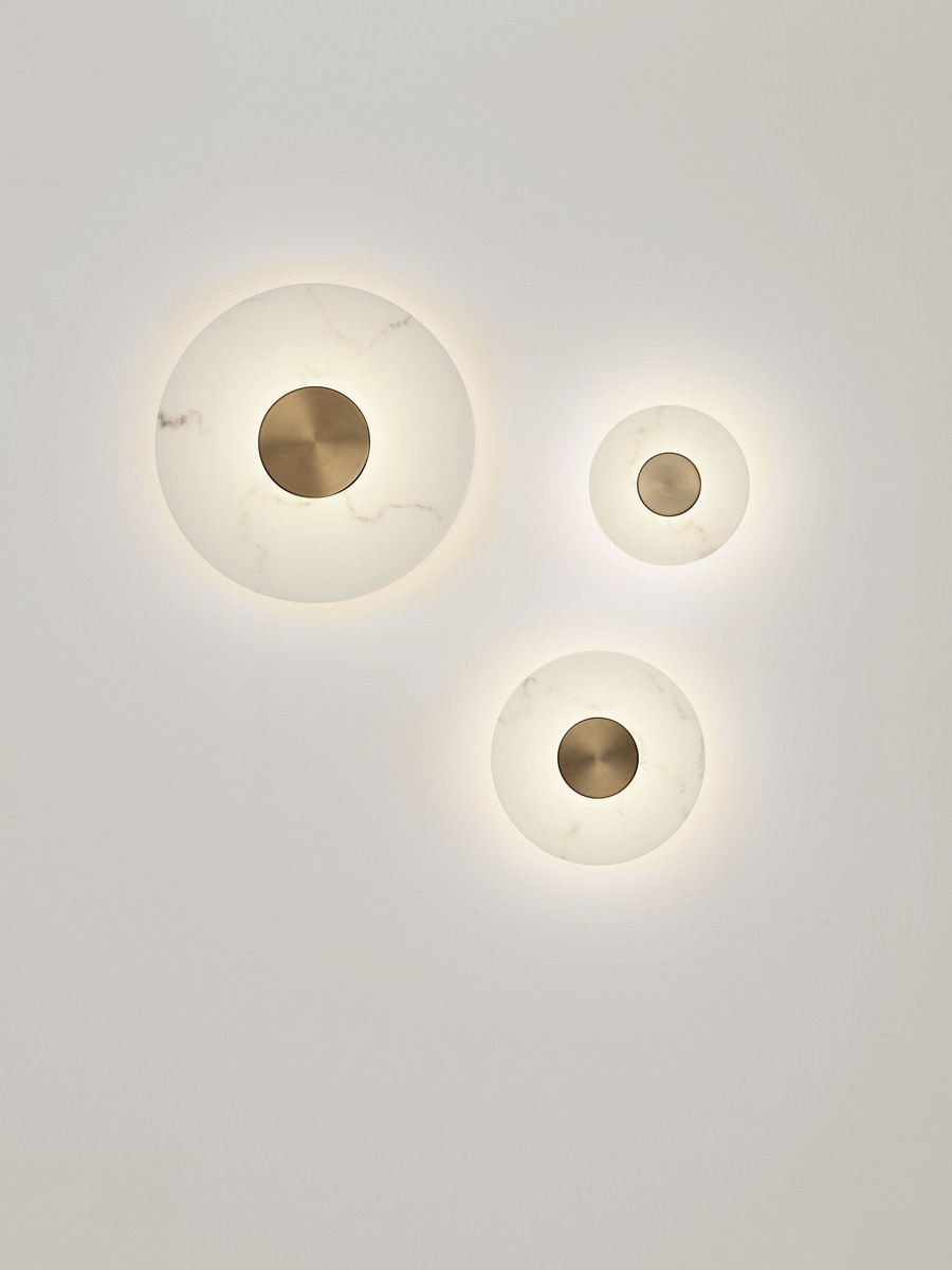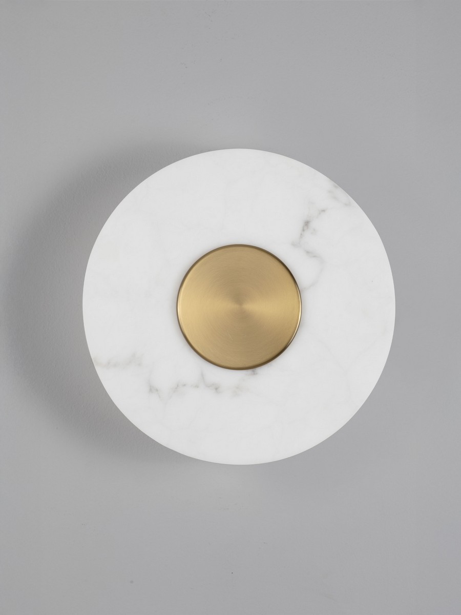Kinkiet VILLAN średnica 300 mm – marmurowy szyk i złoty detal