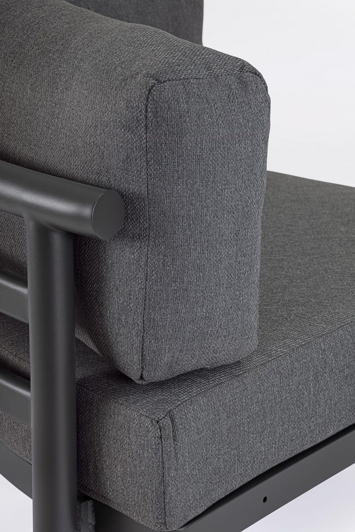 Solidna konstrukcja z aluminium malowanego proszkowo (poliester) zapewnia trwałość i odporność na zmienne warunki atmosferyczne. Siedziska i oparcia wyposażono w grube poduszki z wodoodpornej tkaniny Olefin (100% polipropylen), które nie tylko gwarantują wygodę na najwyższym poziomie, ale również łatwość pielęgnacji dzięki zdejmowanym pokrowcom.