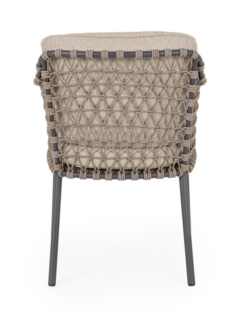 Ivissa przyciąga wzrok ażurowymi bokami wykonanymi z ręcznie plecionej liny polipropylenowej, odpornej na warunki atmosferyczne. Jego lekka, ale solidna konstrukcja ze stali nierdzewnej (typ 201) gwarantuje stabilność i odporność na korozję, nawet przy intensywnym użytkowaniu na zewnątrz.
