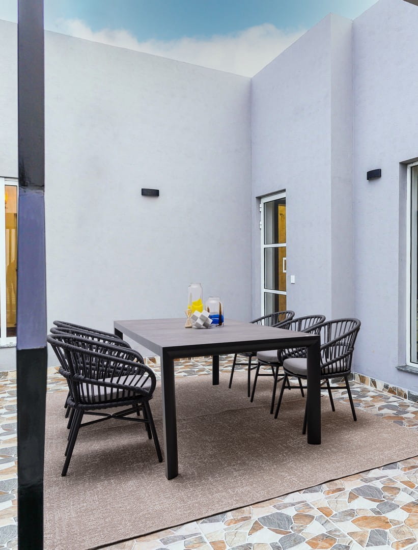 Krzesła ogrodowe Odivelas to idealne połączenie komfortu, lekkości i nowoczesnego designu. Ich subtelnie zaokrąglony kształt i ażurowy splot z liny poliestrowej sprawiają, że meble prezentują się niezwykle lekko i stylowo, a jednocześnie zapewniają wygodne oparcie i wsparcie dla ramion. To doskonały wybór zarówno do nowoczesnych tarasów, jak i bardziej naturalnych aranżacji ogrodowych.