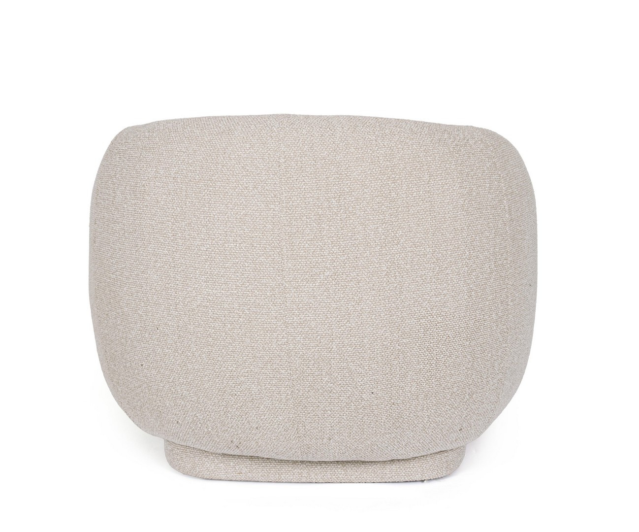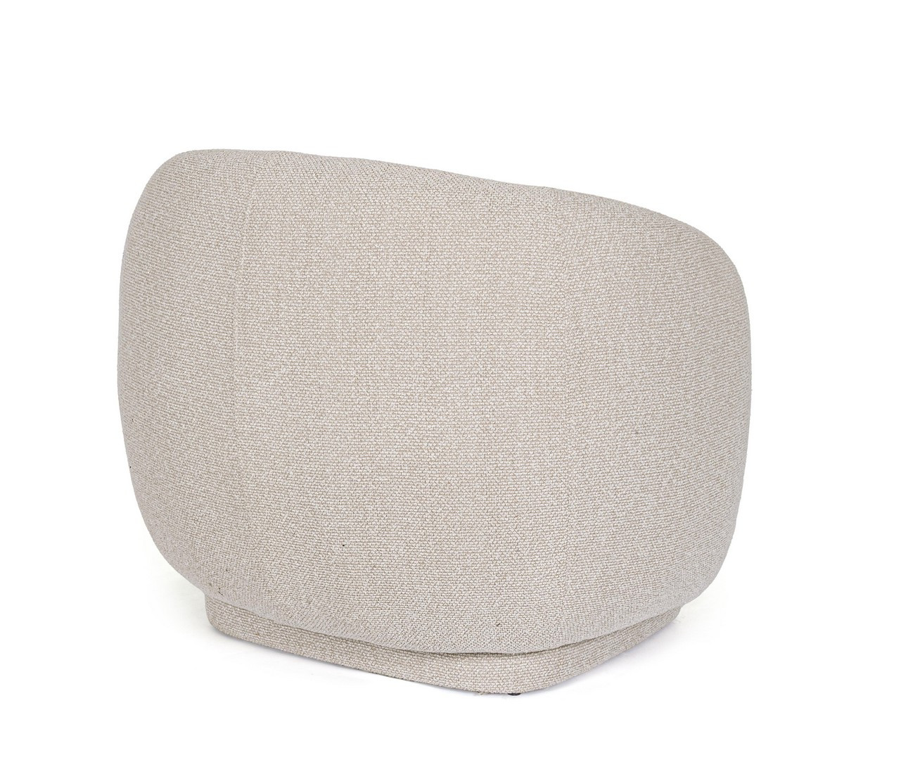 Fotel Brittany to kwintesencja komfortu i nowoczesnej elegancji. Jego opływowa, kubełkowa forma z wysokimi, zaokrąglonymi bokami tworzy przytulną i otulającą przestrzeń wypoczynkową. Mebel tapicerowany jest miękką, teksturowaną tkaniną poliestrową w neutralnym, jasnobeżowym odcieniu, która nadaje mu wizualnego ciepła. Konstrukcja oparta na solidnej ramie ze sklejki oraz wypełnienie z pianki o optymalnej gęstości gwarantują trwałość formy oraz wyjątkowy komfort użytkowania.