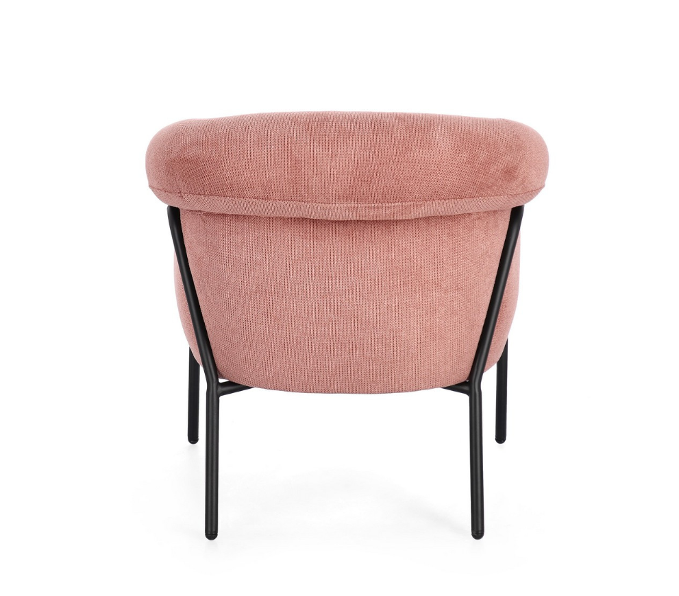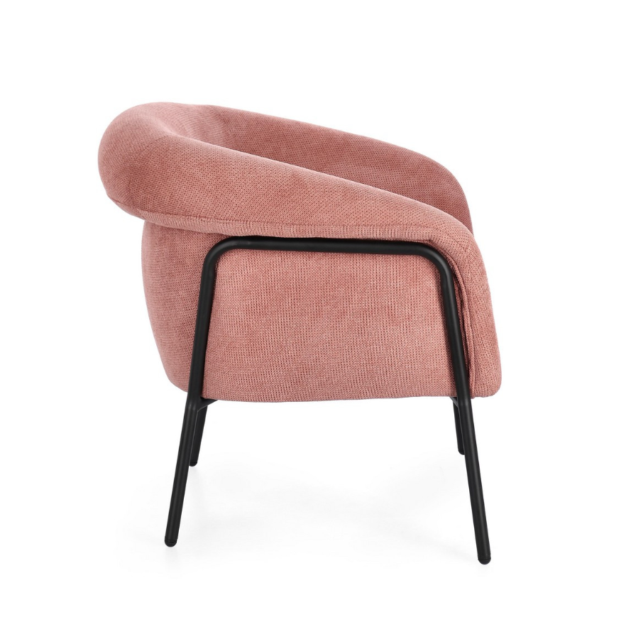 Fotel Camila w wersji Coral to propozycja dla osób, które nie boją się kolorów i pragną nadać swojemu wnętrzu unikalnego charakteru. Ten model w stylu contemporary łączy w sobie surowość industrialnej konstrukcji z ciepłem i energią tapicerki. Czarna, stalowa rama, która tworzy zewnętrzny szkielet i nogi mebla, stanowi wyrazisty kontrapunkt dla miękkiej bryły siedziska, podkreślając nowoczesny rodowód projektu.
