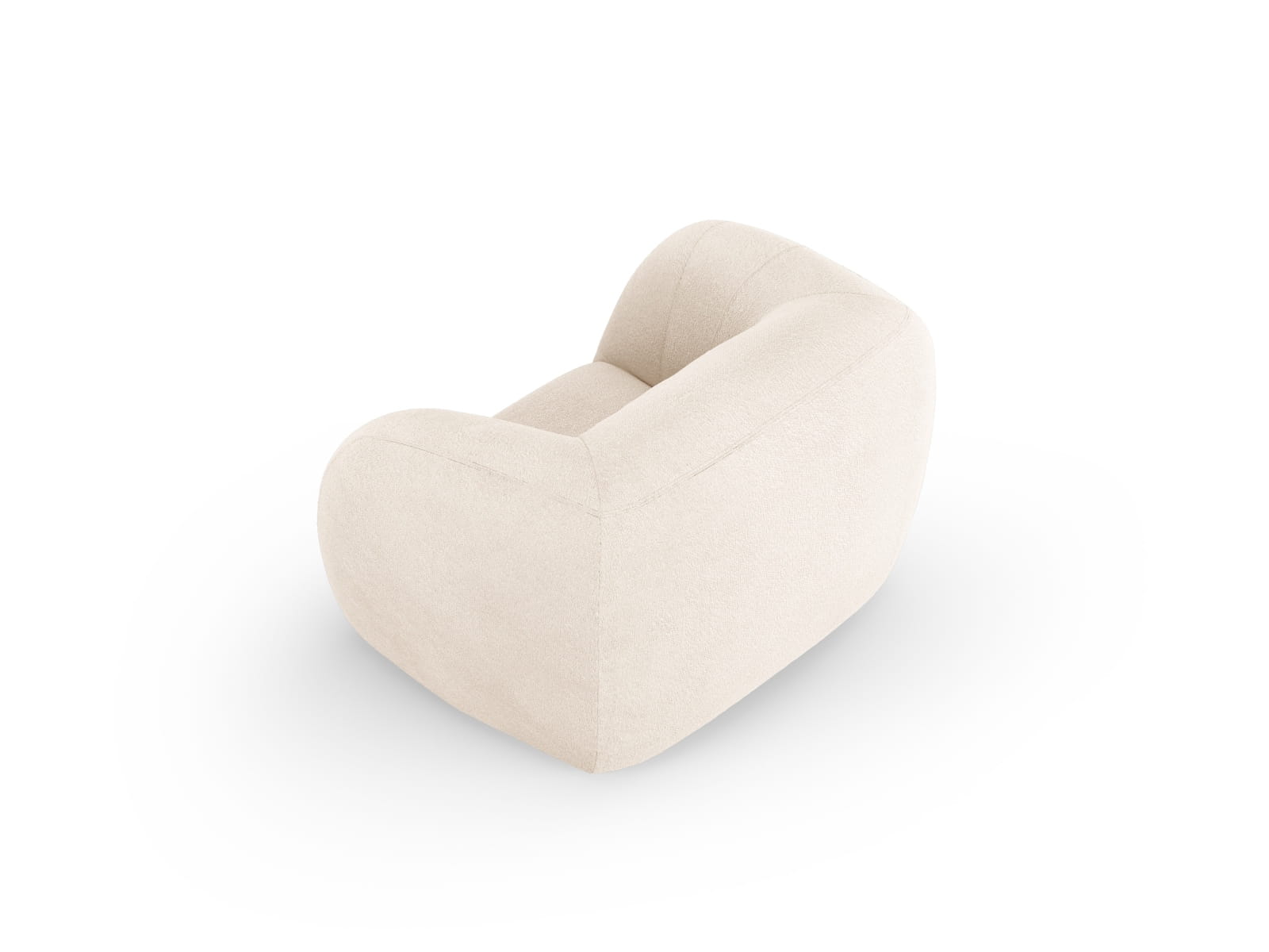 Obicie fotela wykonano z ekskluzywnej tkaniny bouclé Baloo 2074, której gęsty, pętelkowy splot dodaje mu teksturalnej głębi i wyrazistości. Trójwymiarowa faktura materiału sprawia, że fotel prezentuje się niezwykle elegancko, wprowadzając do wnętrza ciepło i ponadczasowy styl. Wysoka odporność tkaniny na ścieranie (test Martindale’a: 100 000) zapewnia jej trwałość i długowieczność, a certyfikat Oeko-Tex potwierdza bezpieczeństwo użytkowania, wolne od substancji szkodliwych.