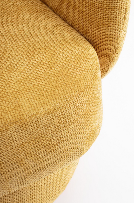 Wyjątkowy charakter fotela podkreśla jego wykończenie. Tapicerka w musztardowym kolorze wykonana z trwałego poliestru charakteryzuje się przyjemną fakturą, która pięknie pracuje ze światłem. To tekstylne obicie jest nie tylko efektowne wizualnie, ale i wytrzymałe. Julienne Mustard to typowy "statement piece" – mebel, który przyciąga wzrok i definiuje styl całego pomieszczenia, doskonale komponując się z drewnem, szarościami czy granatem.