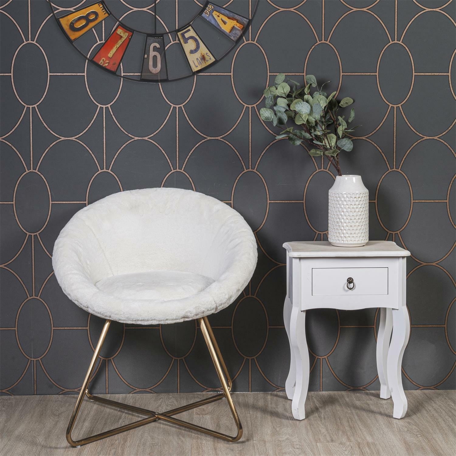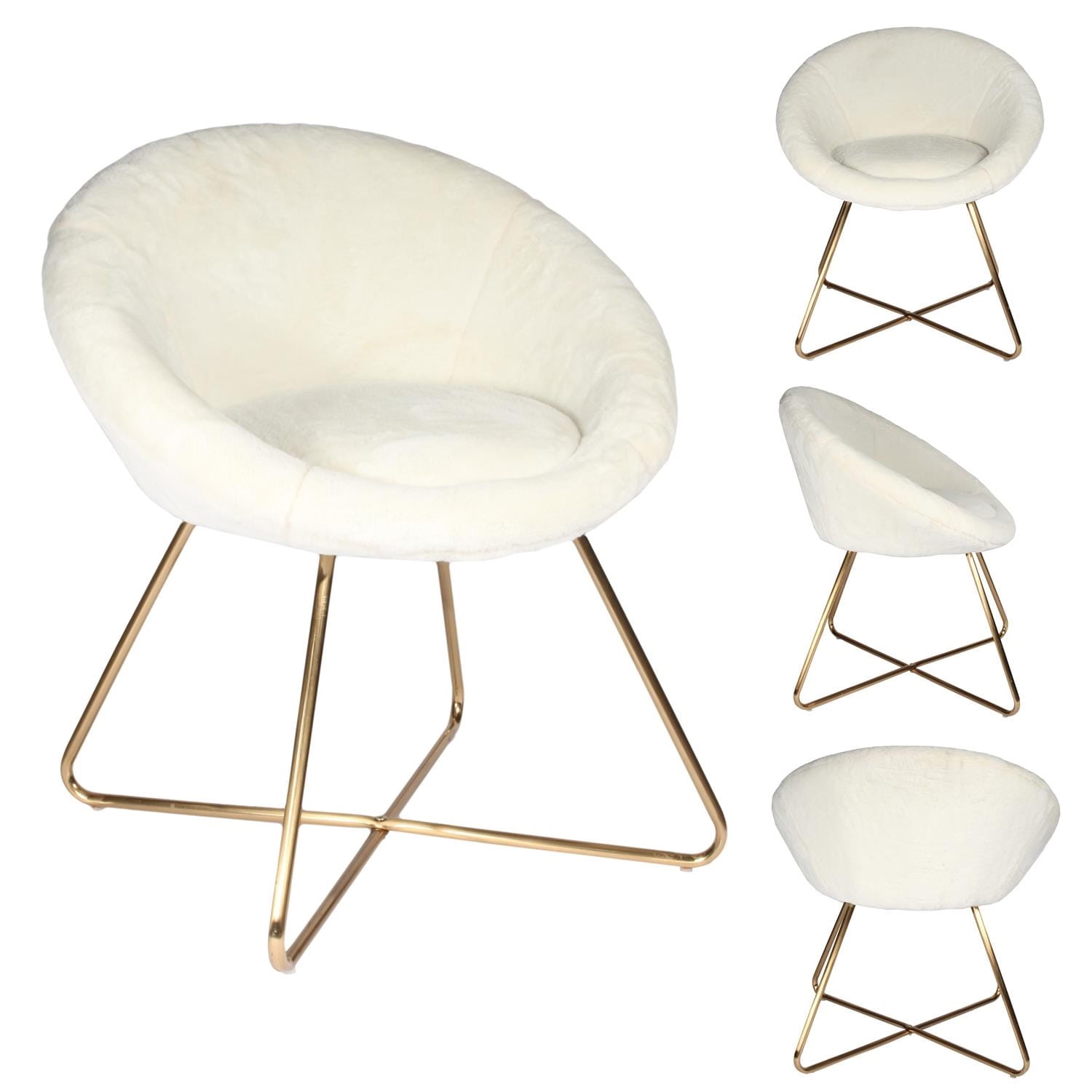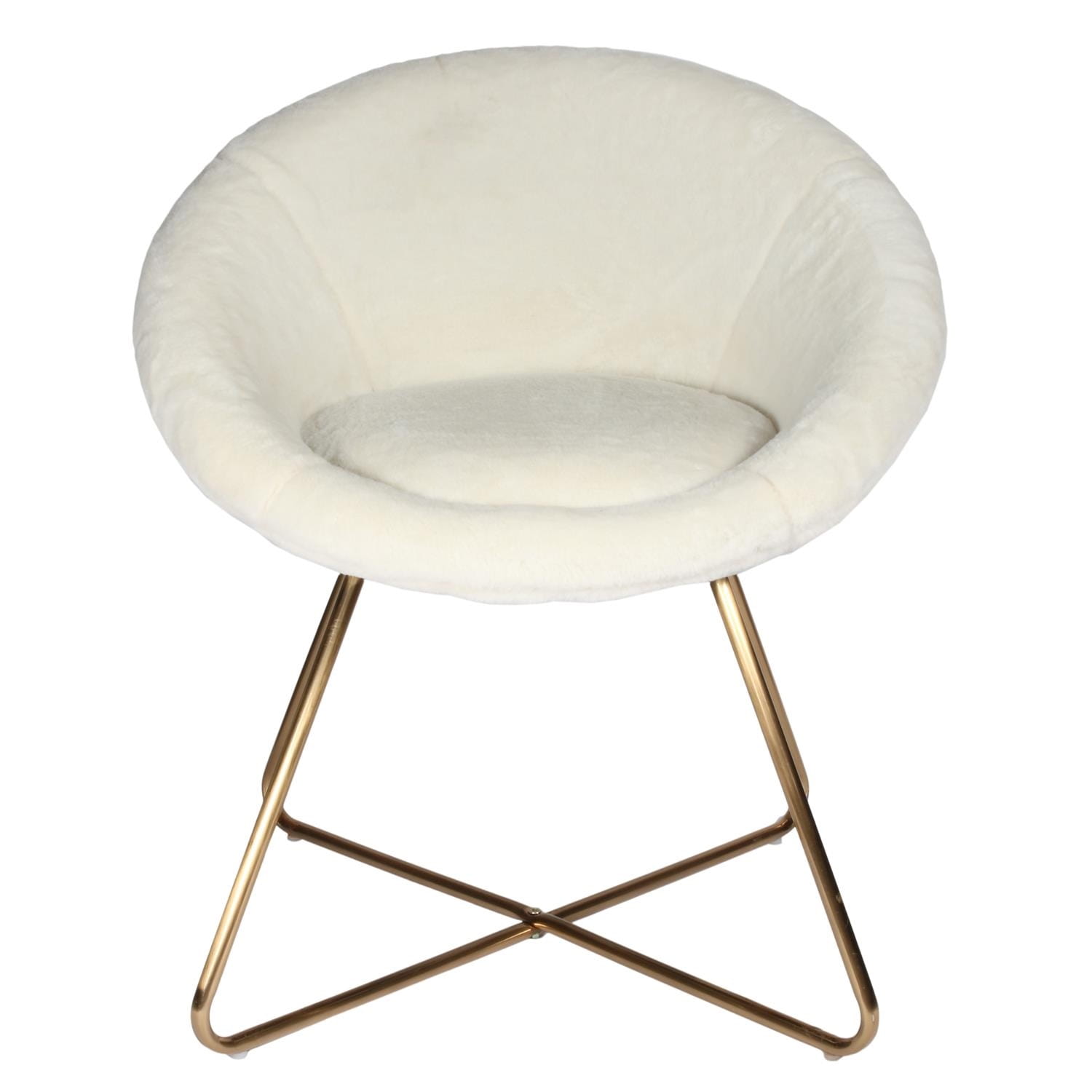 Elegancki fotel Karl Furry wykonany z niesamowicie miękkiej w dotyku, velvetowej tkaniny. Okrągłe, beżowe siedzisko zostało wypełnione elastyczną pianką poliuretanową, dzięki czemu fotel doskonale dopasuje się do ciała, zapewniając maksymalną wygodę użytkowania. Podstawa wykonana jest z metalu w kolorze złotym i składa się z dwóch płóz skrzyżowanych ze sobą. Konstrukcja ta jest lekka, subtelna i zarazem bardzo stabilna, a cały fotel dzięki niej nabiera niebanalnego charakteru.