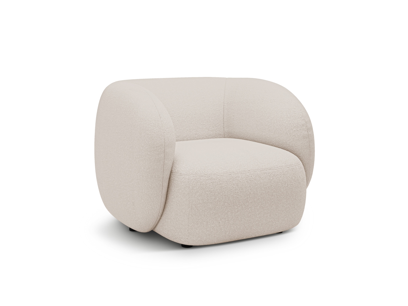 Fotel Kate został obity tkaniną Baloo 2074. Jest to niezwykle modna tkanina Bouclé o pętelkowym splocie, która jest ciepła i miła w dotyku. Beżowy odcień tapicerki jest uniwersalny i elegancki, a trójwymiarowa struktura materiału sprawia, że fotel staje się wyrazistym akcentem w każdym salonie czy sypialni.