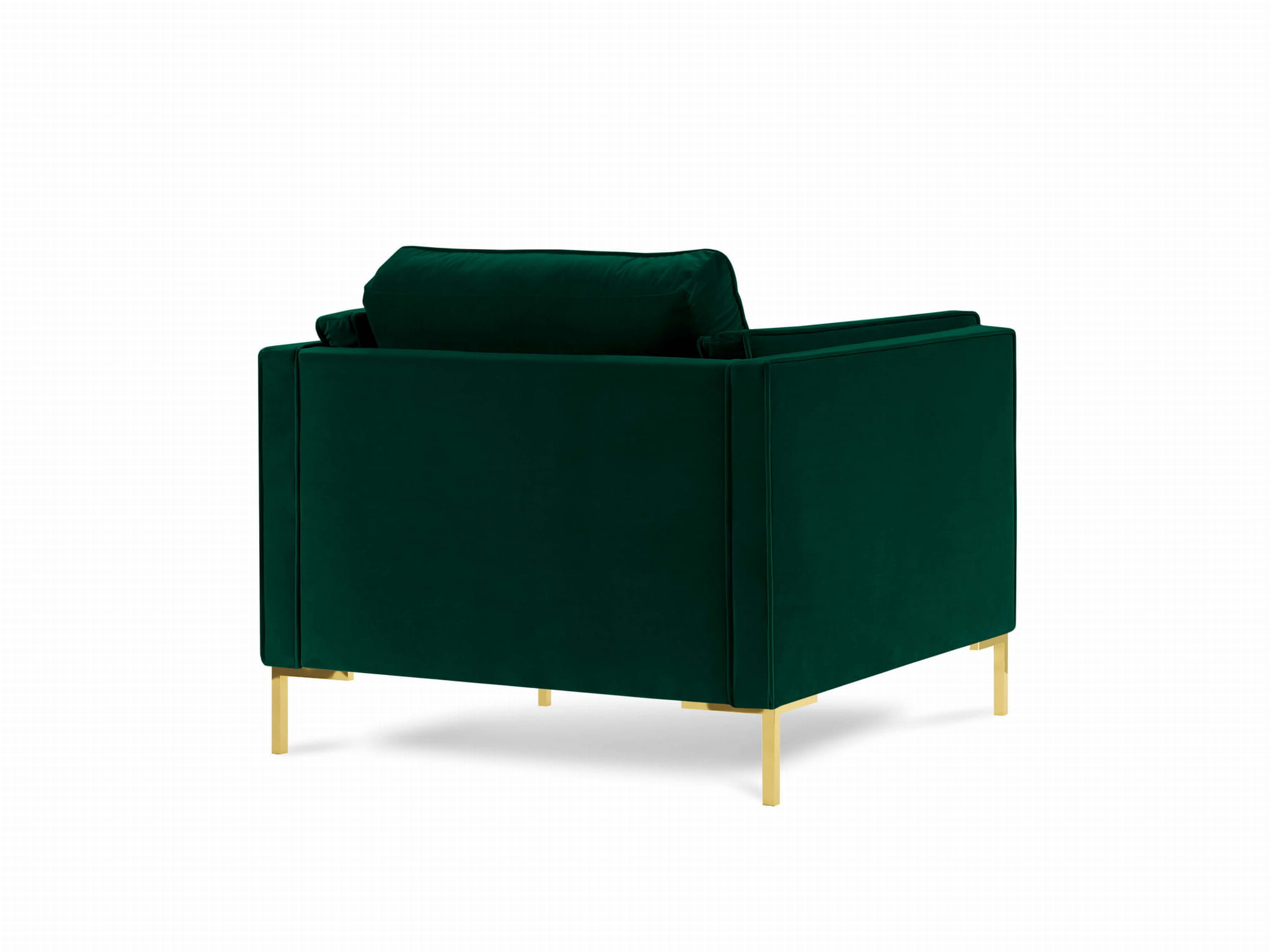 Fotel ustawiony jest na metalowych, geometrycznych nóżkach w kolorze złota. Zachwycają one prostotą wykonania i jednoczesną elegancją. Ulokowanie mebla na smukłych nóżkach sprawa, że nabiera on optycznej lekkości. Zaletą takiego rozwiązania jest także nieograniczony dostęp do przestrzeni pod meblem, a co za tym idzie - ułatwione utrzymanie czystości w pomieszczeniu.