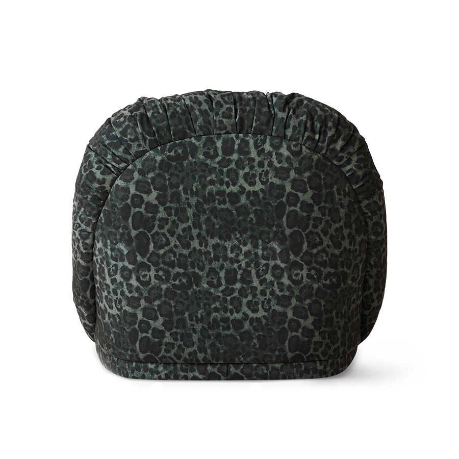 Meloa Panther to fotel, który nie próbuje się przypodobać – on po prostu robi wrażenie. Odważna, miękka sylwetka o zaokrąglonych liniach łączy w sobie komfort i charakter, a głęboka zieleń w panterkowy wzór dodaje mu wyrazistego, lekko buntowniczego twistu.