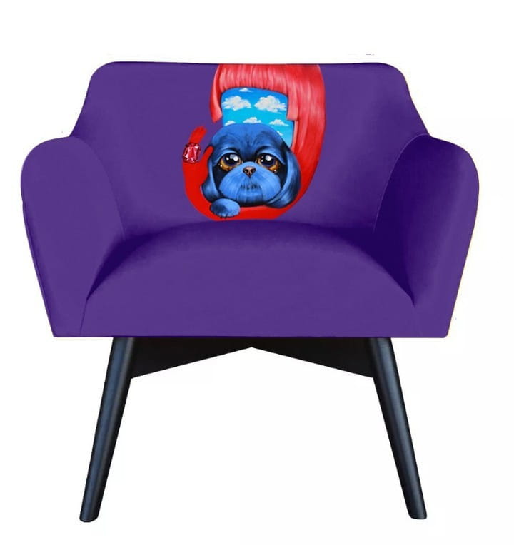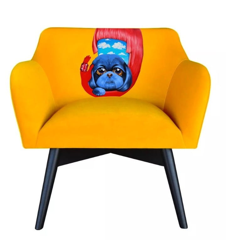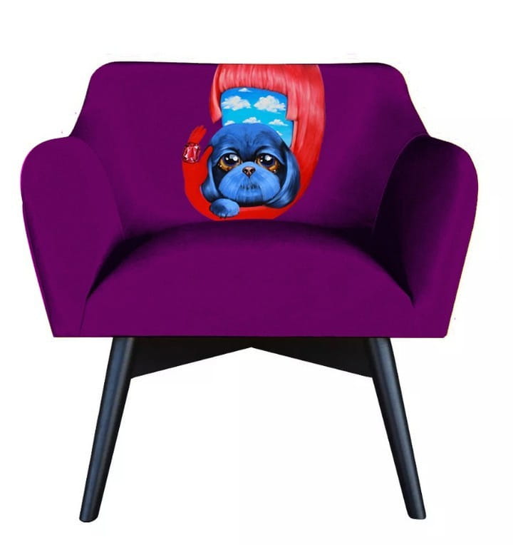 Fotel stworzony przez projektantkę Katarzynę Jasyk, oparcie zdobi obraz polskiej malarki Małgorzaty Łodygowskiej.
