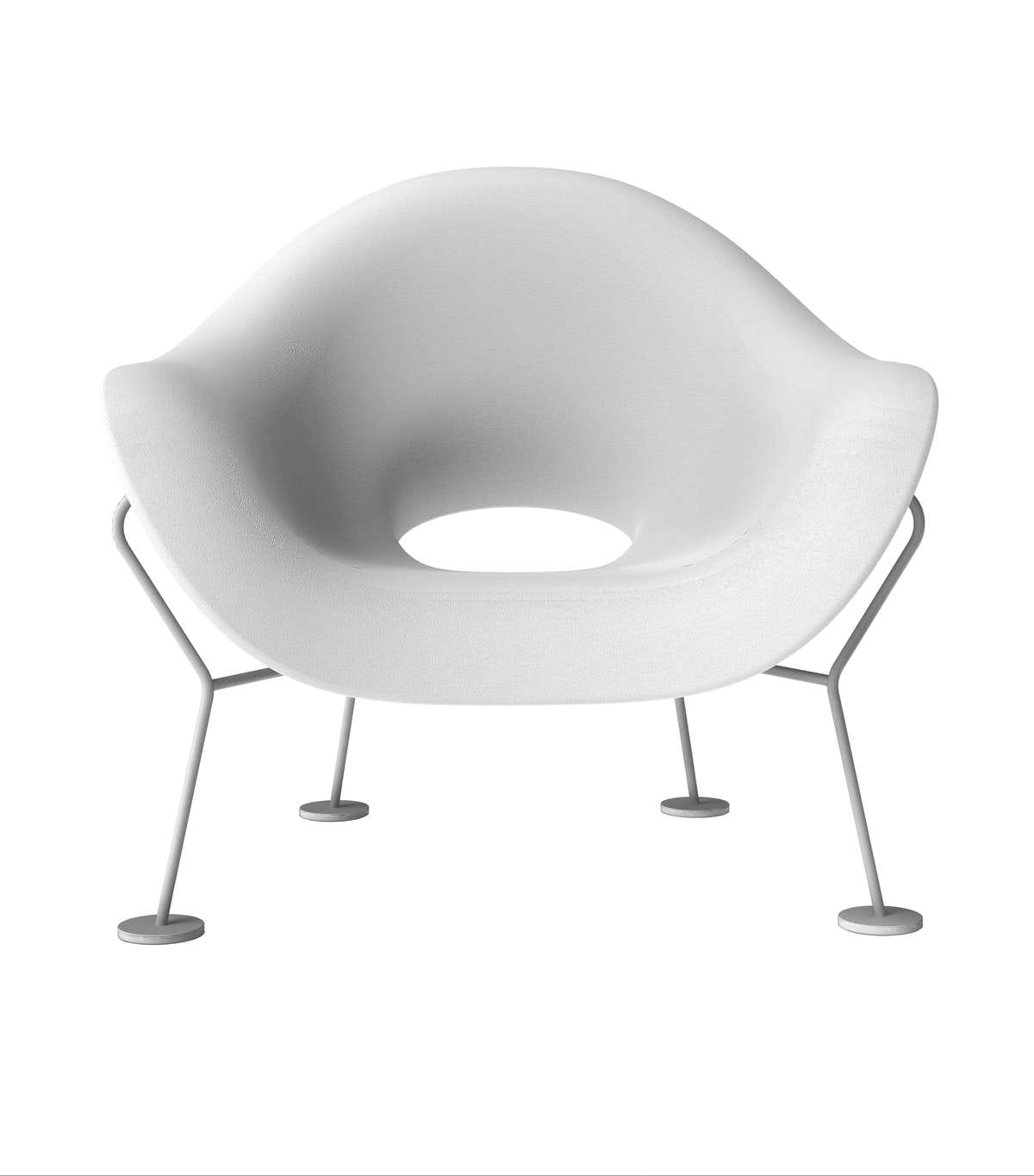 Fotele Pupa to miękkie i urzekające siedziska o zmysłowej elegancji dzięki metalowej podstawie, która dodatkowo uwydatnia zaokrąglone linie fotela.