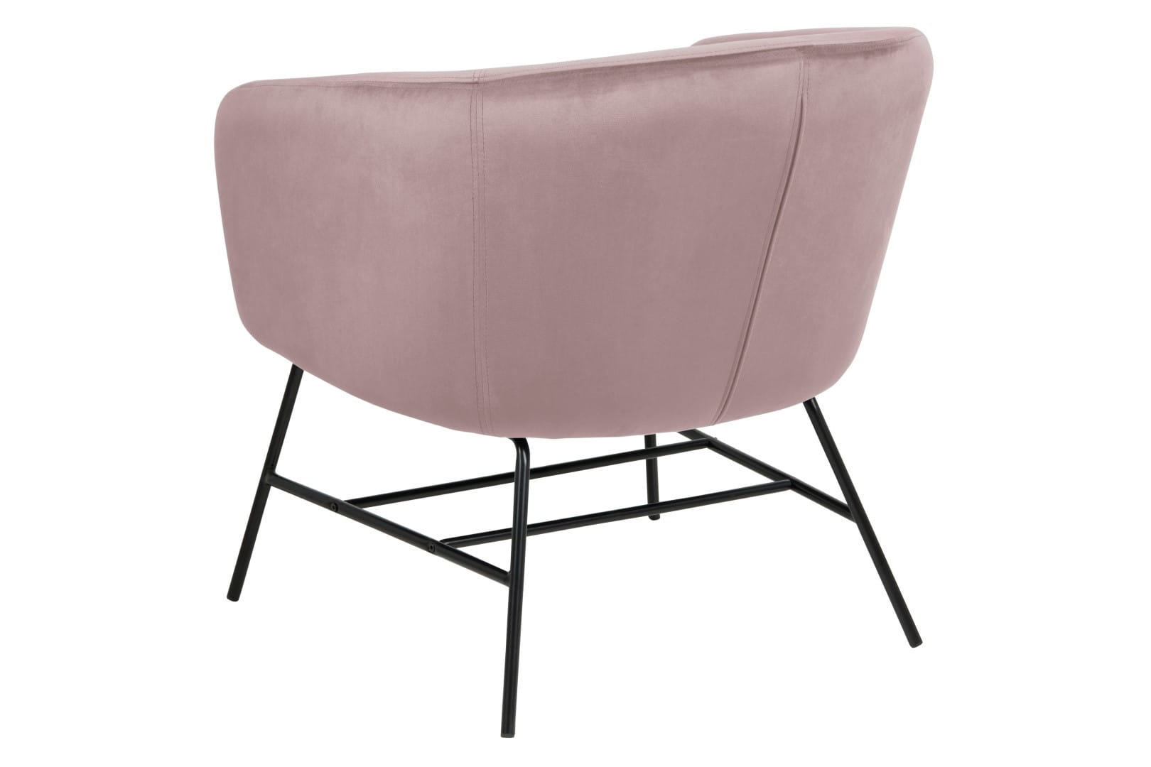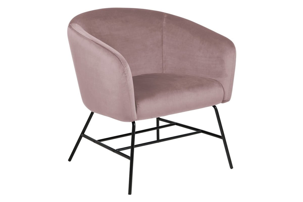 Korpus fotela obszyty jest najmodniejszą, aksamitną w dotyku tkaniną welurową. Podstawa metalowa malowana proszkowo na czarno.