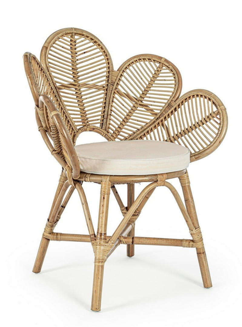 Fotel Boho Flores to kwintesencja naturalnego stylu i komfortu. Wykonany z rattanu, który charakteryzuje się lekkością i wyjątkową estetyką, fotel wprowadza do wnętrz ciepły, boho klimat. Powierzchnia rattanu została zabezpieczona lakierem melaminowym, co zapewnia trwałość i piękny wygląd na dłużej.