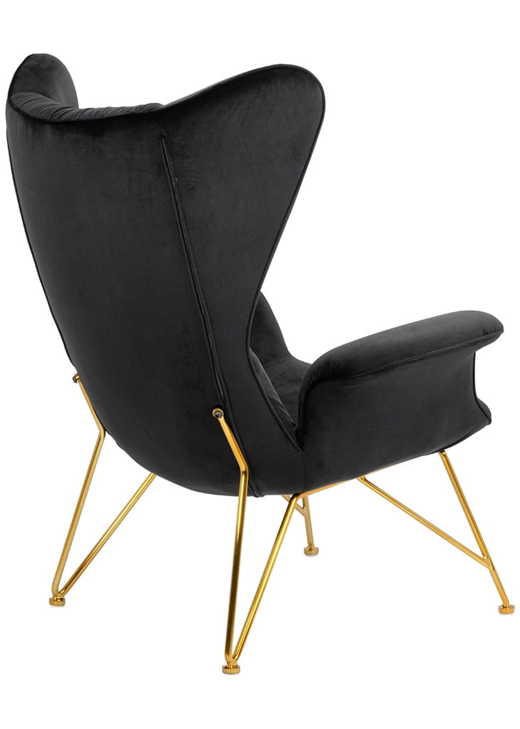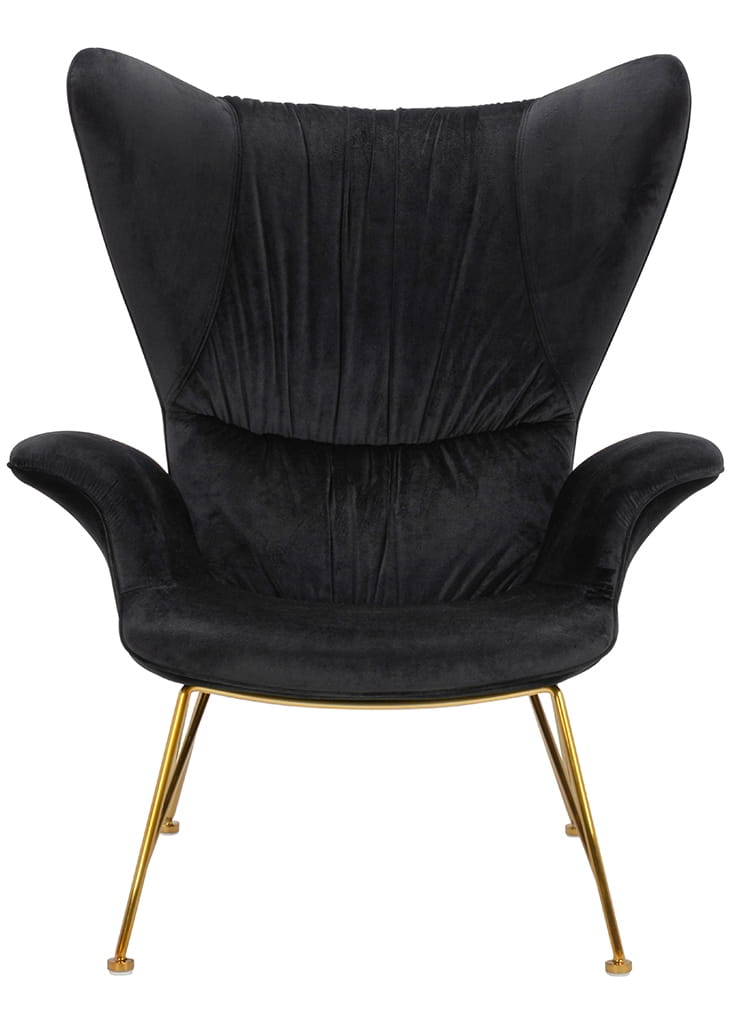 Nie ma potrzeby wychwalania tego projektu, bo już na pierwszy rzut oka widać, że to nie tylko piękny, ale też wygodny i funkcjonalny mebel. Obszyty miękkim, ciepłym welurem, posiada wiele atrakcyjnych i dekoracyjnych detali, takich jak np. oparcie w stylu uszaka, eleganckie drapowanie materiału, wygodne i świetnie wyprofilowane podłokietniki oraz wykonana ze stali nierdzewnej podstawa w złotym kolorze. Zachęca do tego, by się w nim rozsiąść i zatopić się w ciekawej lekturze, posłuchać muzyki albo po prostu podumać. Będzie pięknie wyglądał w salonie, sypialni, pokoju dziennym i w wielu innych pomieszczeniach.