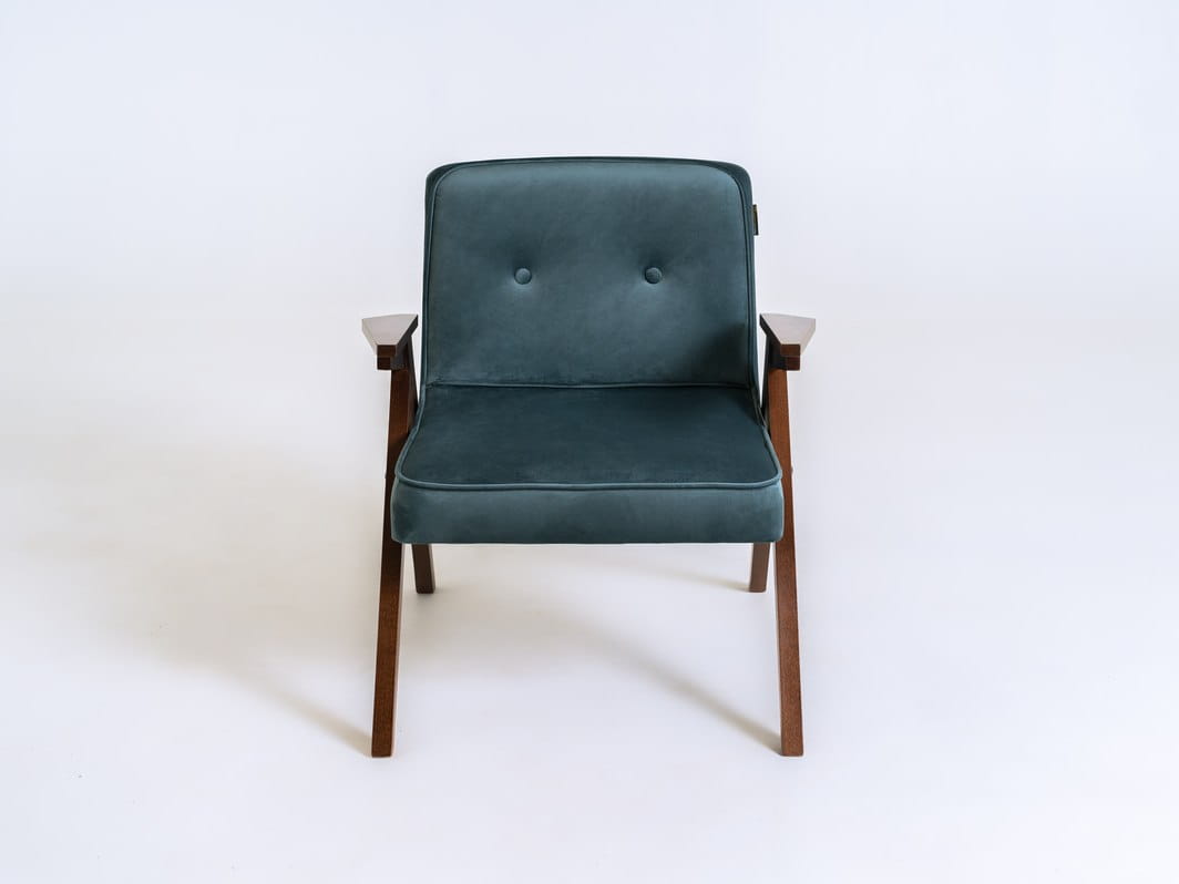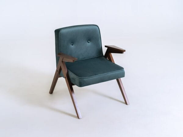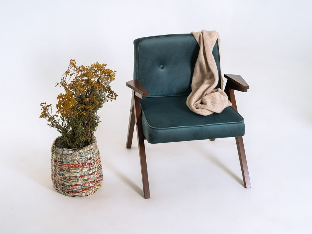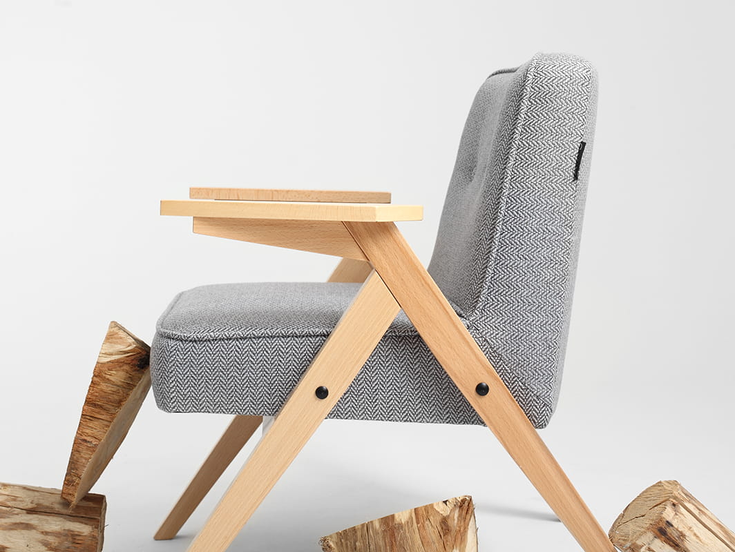 Fotel w stylu skandynawskim. Kompaktowe rozmiary pasują do niewielkich przestrzeni.