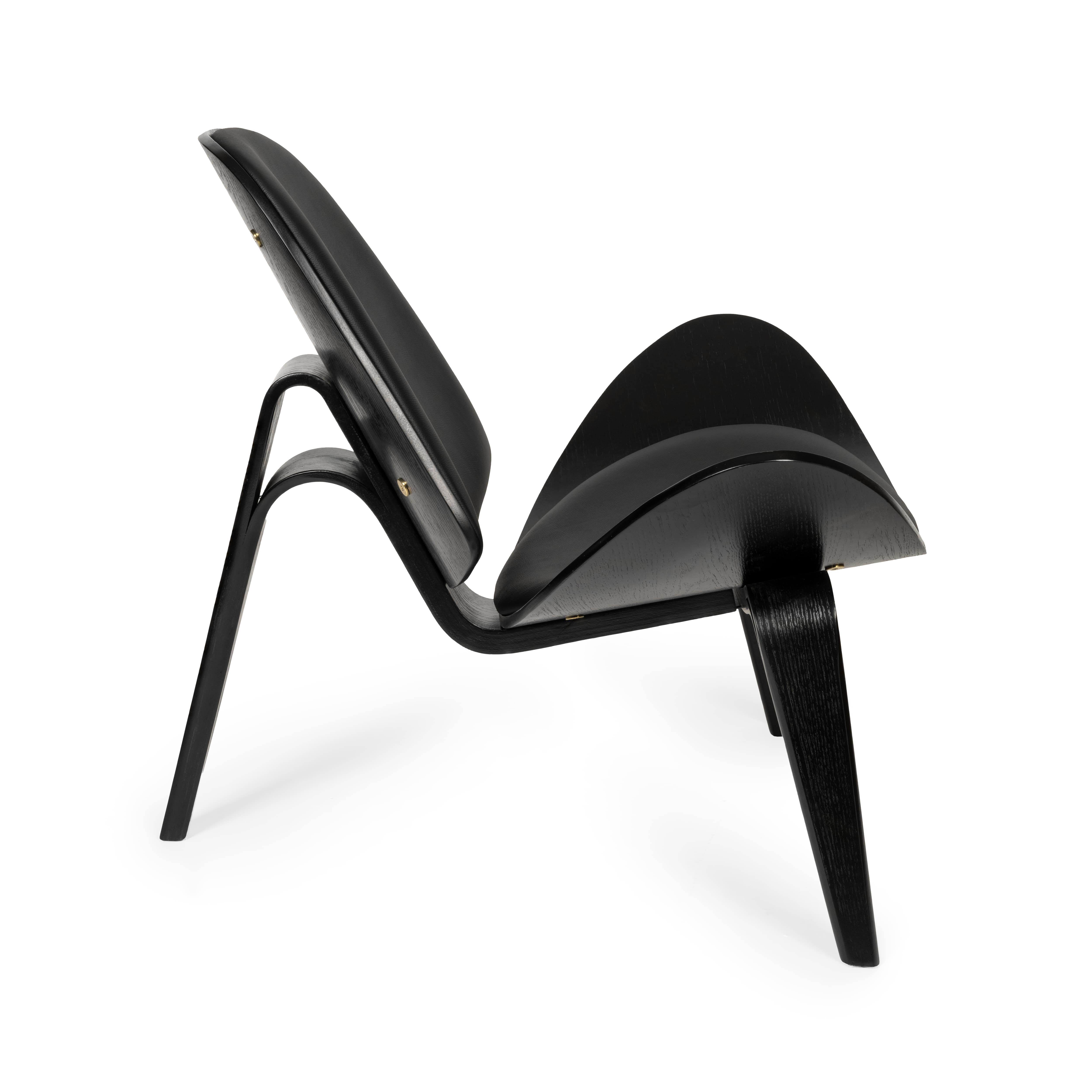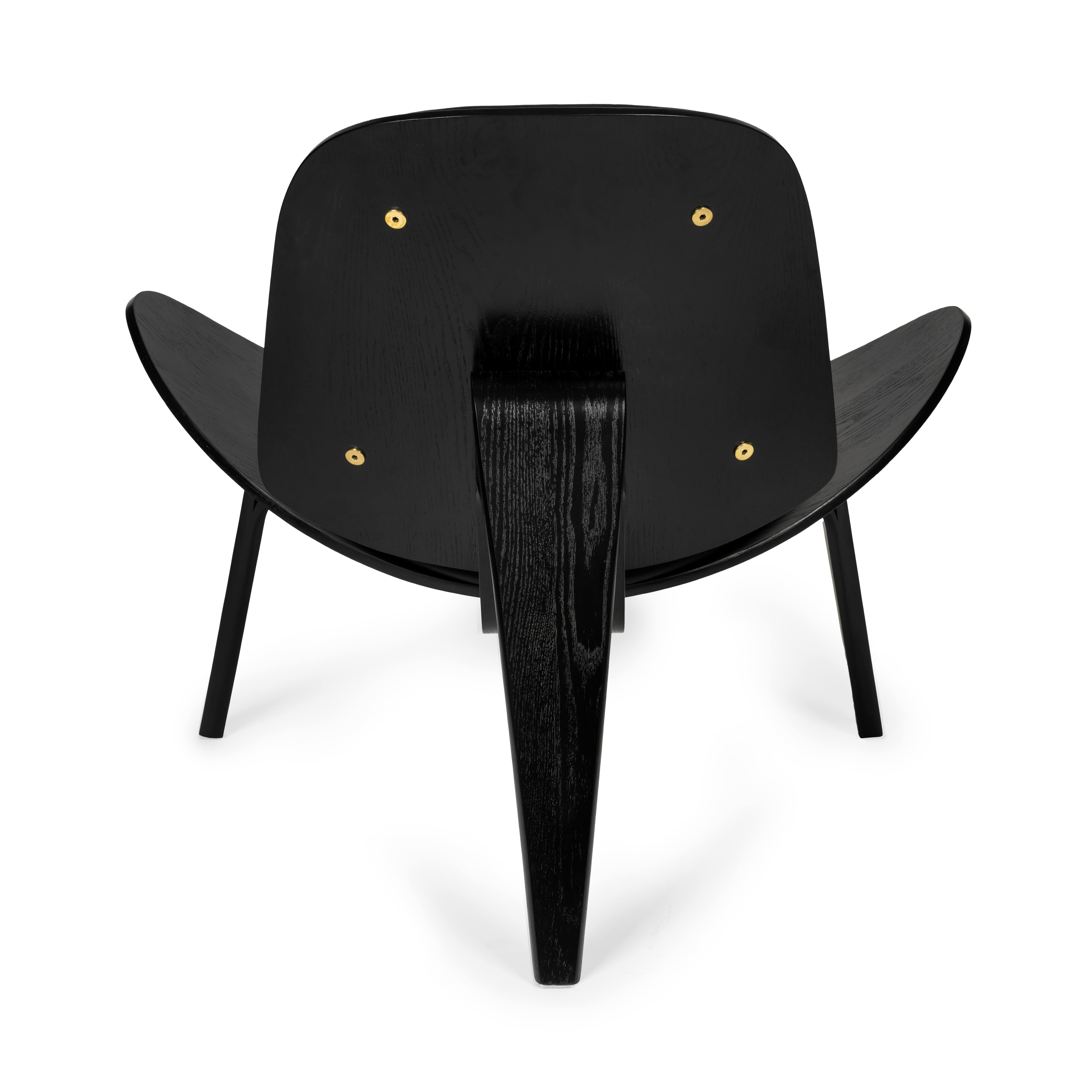 Solidna konstrukcja fotela obejmuje wytrzymałą podstawę z giętej sklejki. Wyprofilowane siedzisko i oparcie tworzą charakterystyczny kształt muszli.