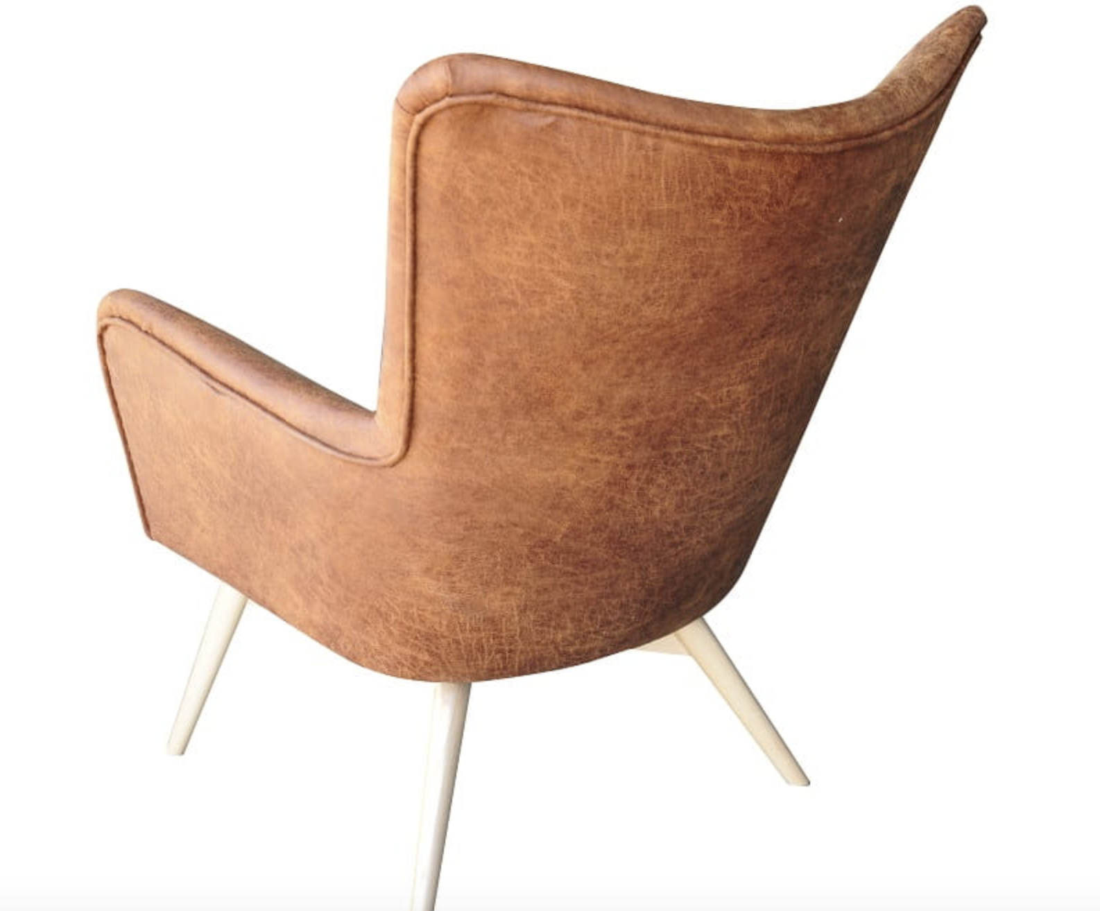Fotel Wesley ze skóry naturalnej, szeroki z wygodnymi podłokietnikami ociepli i ożywi każde wnętrze. Szerokie siedzisko i oparcie nadają mu elegancji. Miękkie siedzisko oraz wysokie podłokietniki zapewniają najwyższy komfort użytkowania. Smukłe drewniane nóżki zapewniają stabilność i bezpieczeństwo.