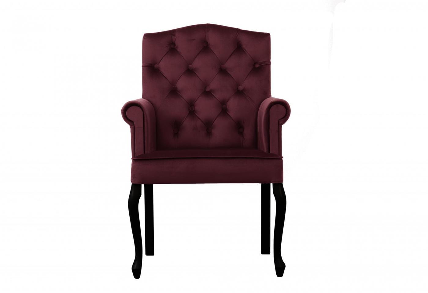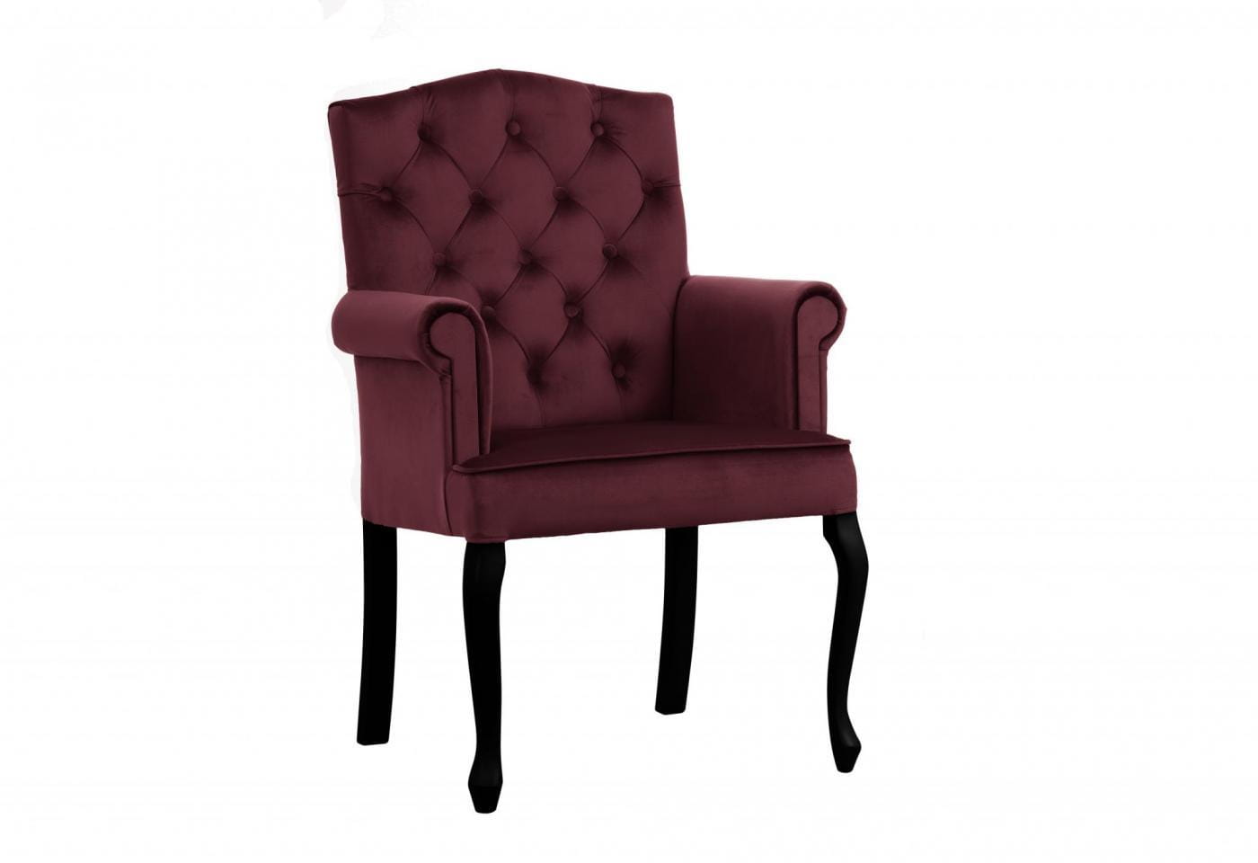 Fotel wykonany jest z delikatnej, aksamitnej tkaniny. Wewnętrzną stronę oparcia zdobi pikowanie chesterfield, które w niezwykły sposób podkreśla jego urzekającą i przyciągającą uwagę formę. Góra oparcia zrobiona jest w stylu ludwik, a całość doskonale dopełniają zaokrąglone podłokietniki. Stabilność zapewniają drewniane i wytrzymałe nogi w stylu ludwik, które dodają klasycznego stylu. Całość tworzy bardzo wyrazisty i charakterny mebel, który zapewni najwyższy komfort i wygodę.