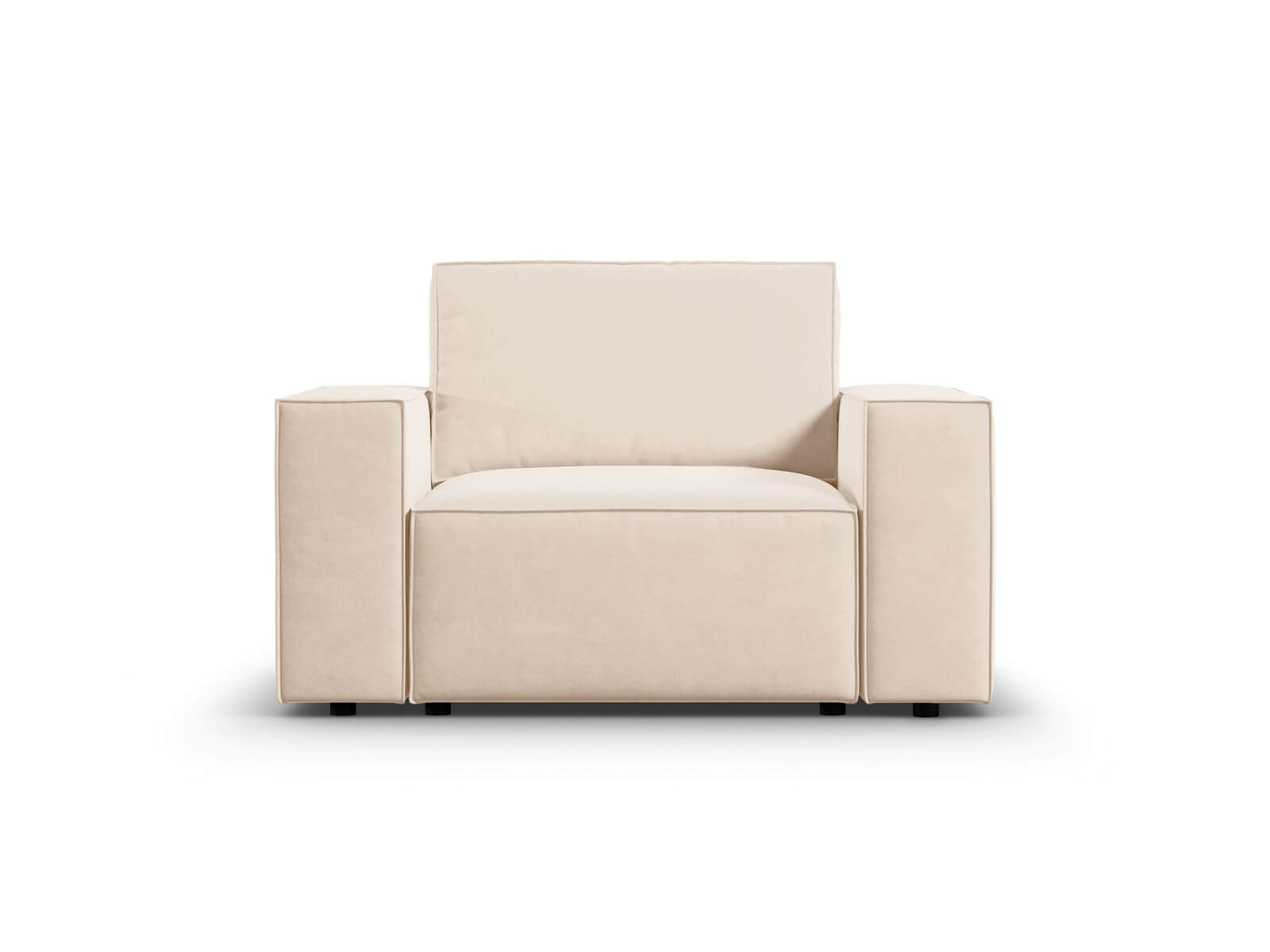 Jasno beżowy fotel Carlo to mebel cechujący się geometryczną bryłą i jednocześnie wysokim komfortem wypoczynku. Forma oraz jakość wykonania fotela składa się na mebel pełen estetyki i elegancji.
