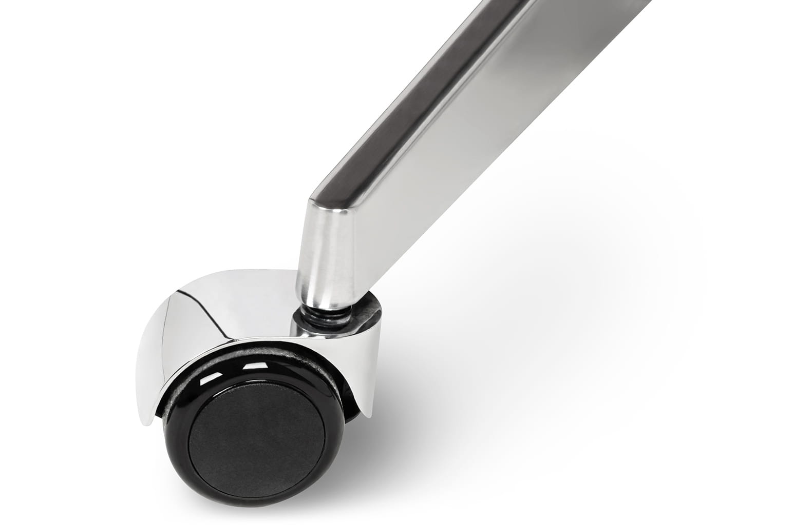 Całość dopełnia obrotowa podstawa z cichymi kółkami, która umożliwia swobodne poruszanie się po przestrzeni biurowej. Podstawa oraz elementy metalowe wykonane zostały ze stali polerowanej, co gwarantuje trwałość i stylowy wygląd przez wiele lat.