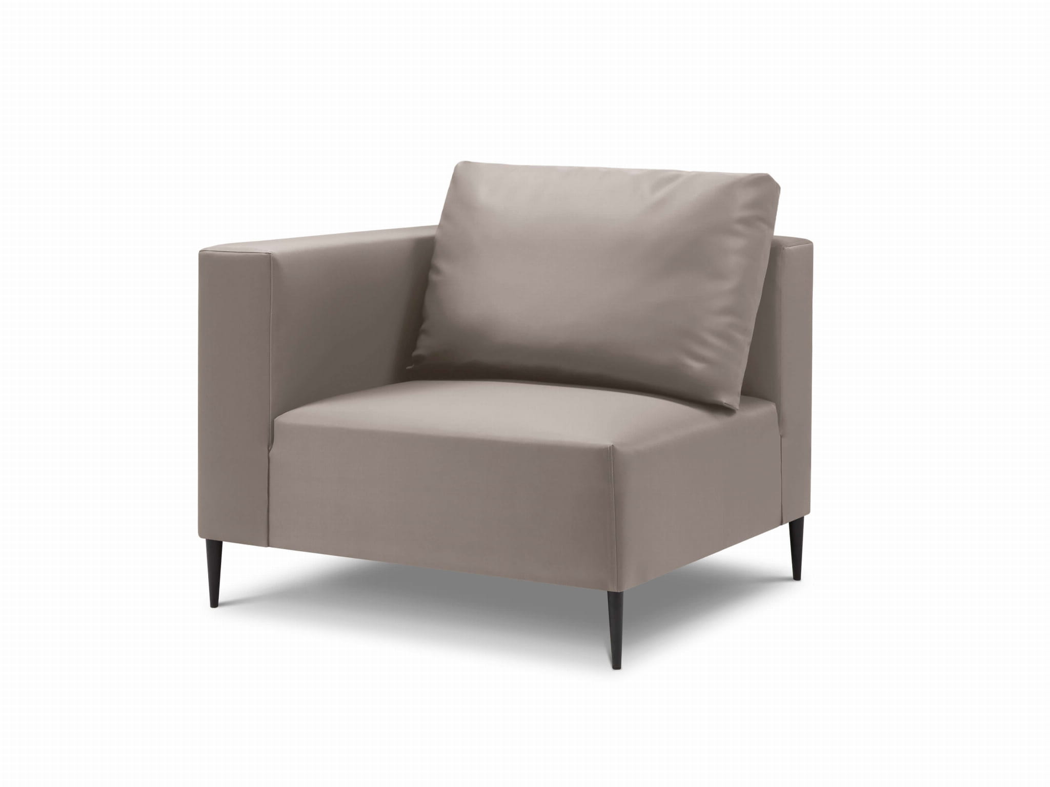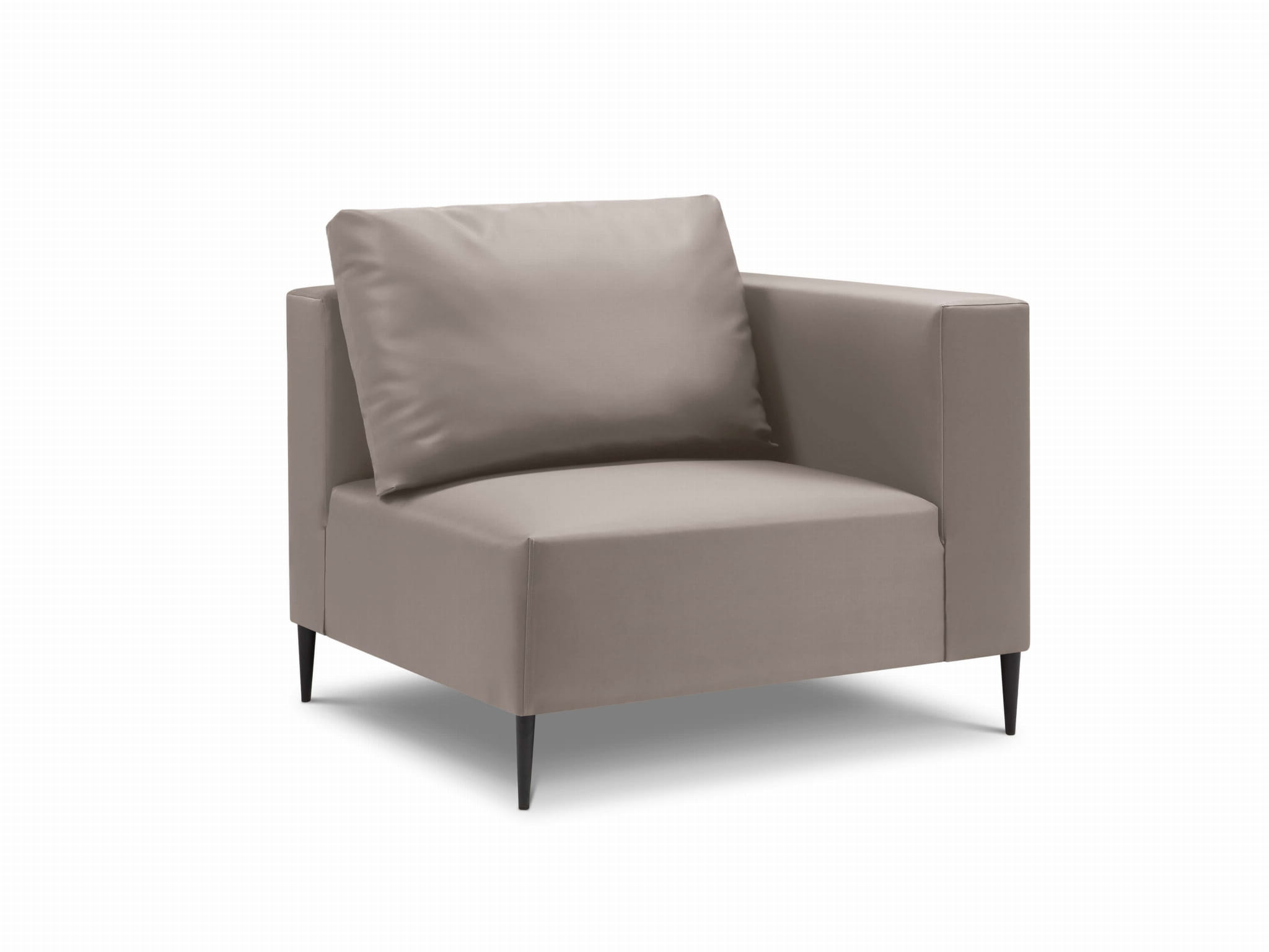 Nowoczesny, beżowy fotel modułowy do ogrodu, który jest świetnym uzupełnieniem do pozostałych mebli z kolekcji Fiji. Pokryty tkaniną odporną na warunki zewnętrzne. Do wyboru w wersji lewo lub prawostronnej.