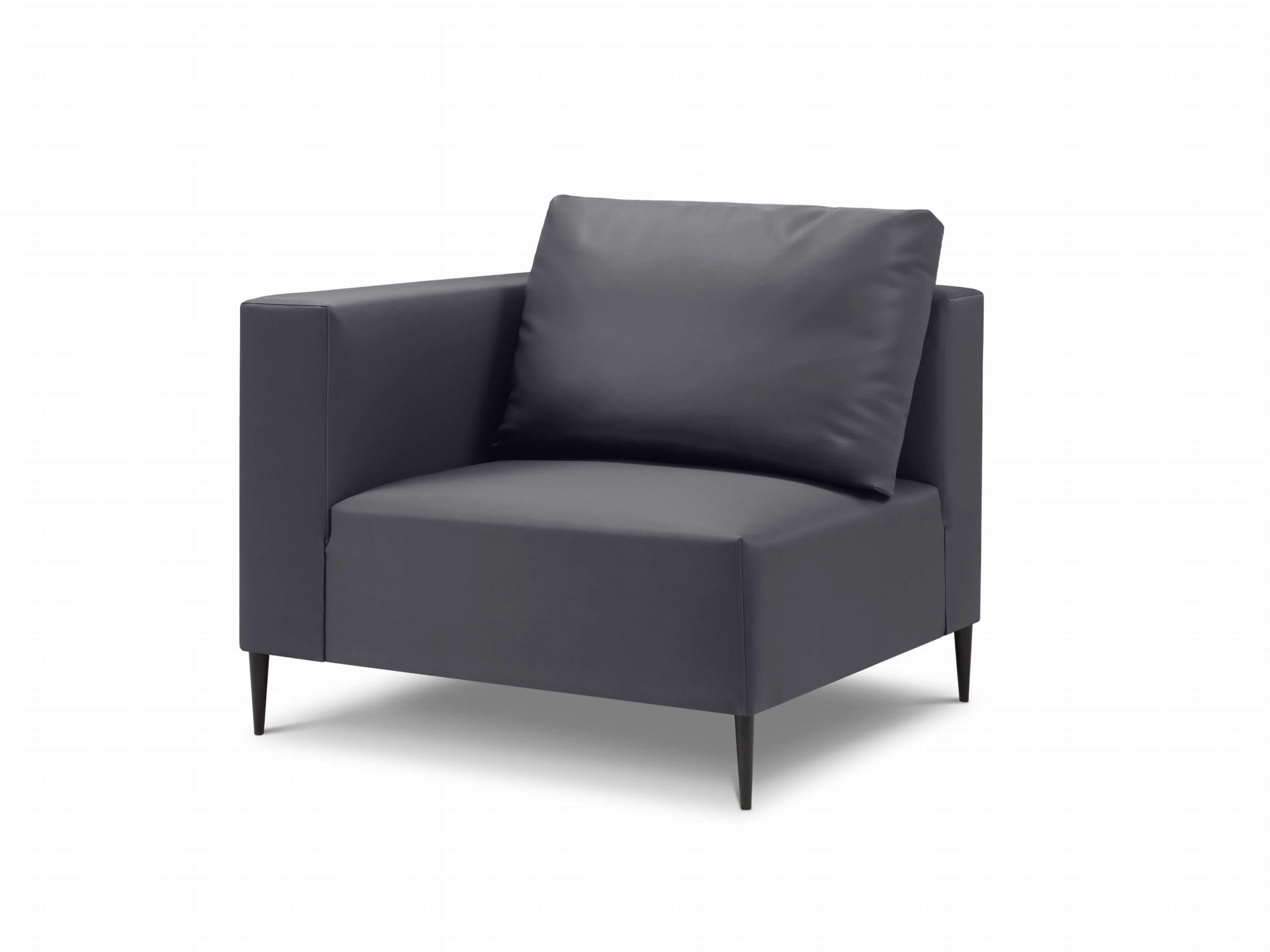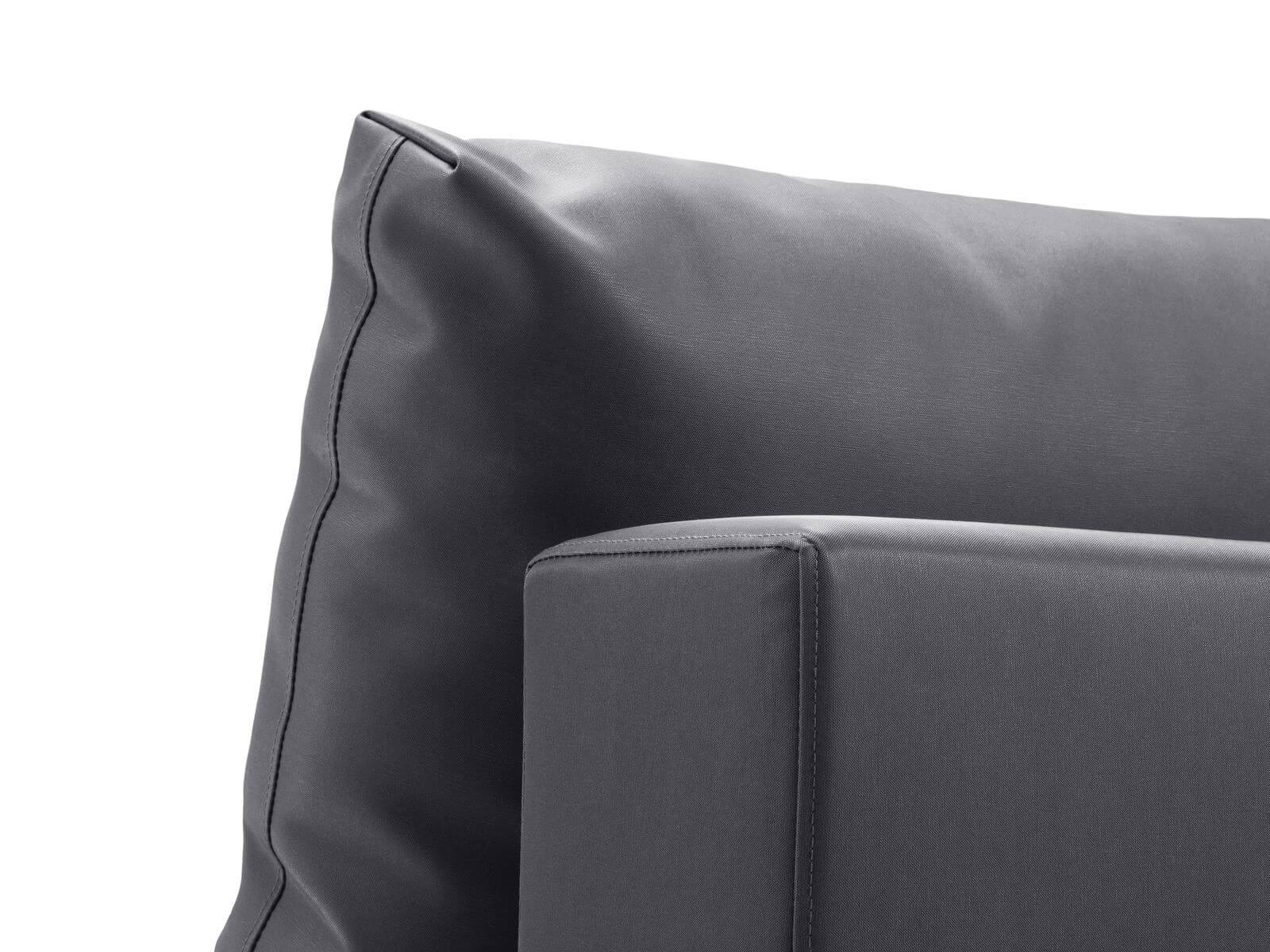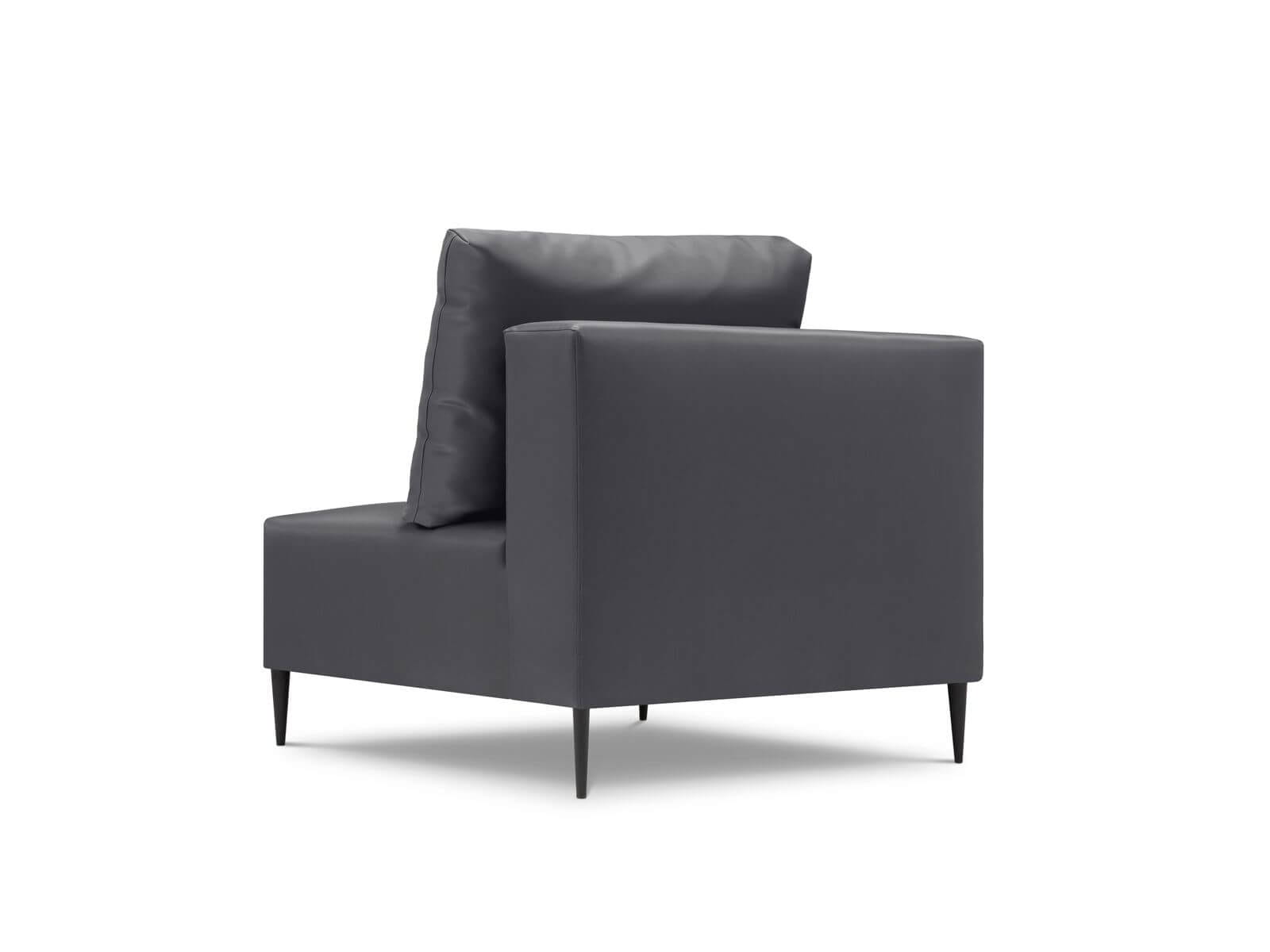 Nowoczesny, szary fotel modułowy do ogrodu, który jest świetnym uzupełnieniem do pozostałych mebli z kolekcji Fiji. Pokryty ciemną, odporną na warunki zewnętrzne, tkaniną. Do wyboru w wersji lewo lub prawostronnej.