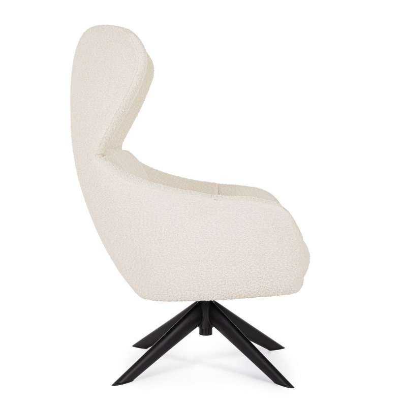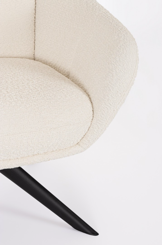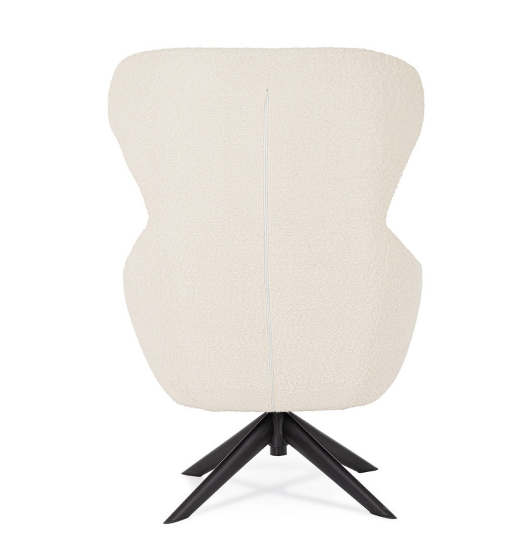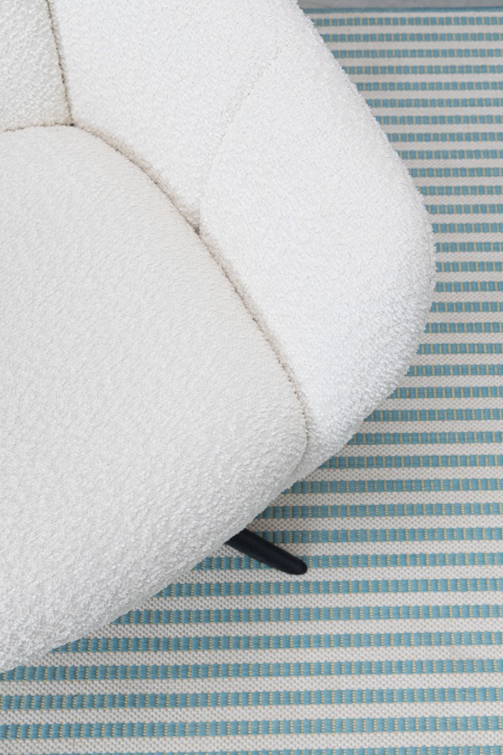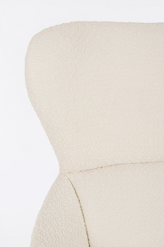 Zwieńczeniem projektu włoskiej marki Bizzotto jest wyjątkowe wykończenie. Tapicerka w śnieżnobiałym odcieniu, wykonana z trwałego poliestru, charakteryzuje się wyrazistą, pętelkową fakturą (w stylu modnego "baranka"). Materiał ten pięknie współpracuje ze światłem i sprawia, że fotel staje się niezwykle miły w dotyku. Hailey Snow to mebel, który nie tylko przyciąga wzrok i definiuje styl pomieszczenia, ale przede wszystkim oferuje niezrównany relaks każdego dnia.