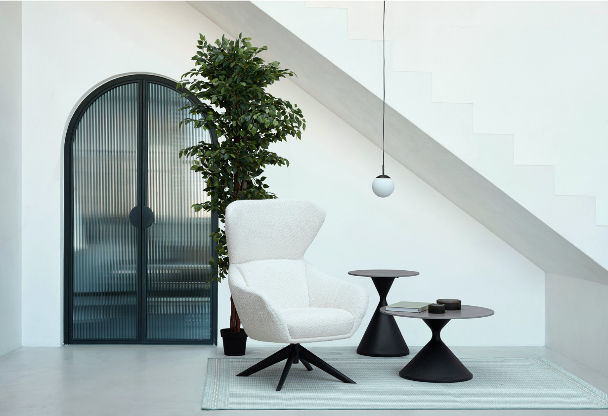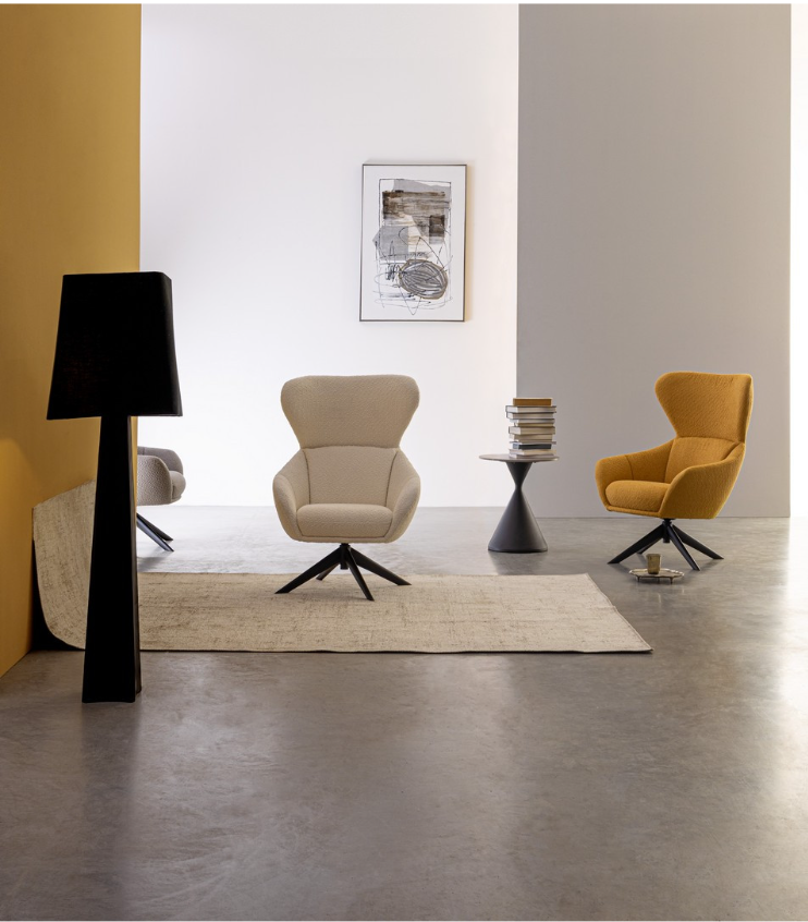 Fotel obrotowy Hailey Snow to propozycja dla miłośników nowoczesnego designu połączonego z bezkompromisową wygodą. Jego wysoka, uszakowa forma z charakterystycznym oparciem i płynnymi liniami podłokietników przyciąga wzrok i zaprasza do odpoczynku. Kontrastowe zestawienie jasnej, teksturowanej tapicerki z solidną, czarną podstawą ze stali nadaje bryle wyrazistego charakteru, który doskonale odnajdzie się w salonie, sypialni czy domowym gabinecie, stanowiąc idealny balans między surowością a ciepłem.