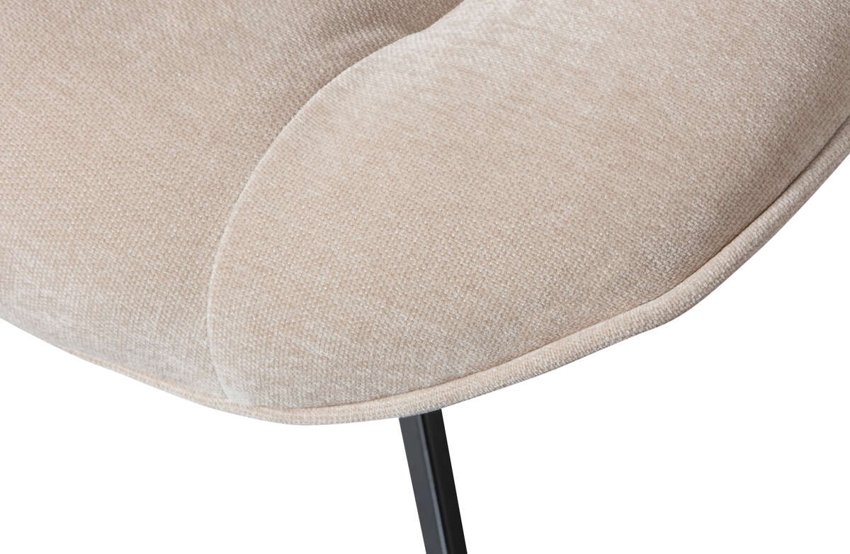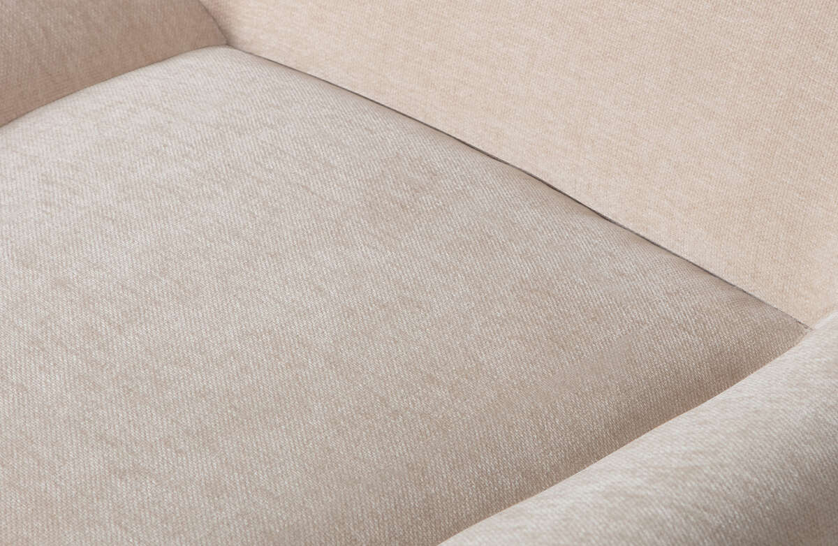 Fotel w całości tapicerowany jest miękkim szenilem o wyjątkowej wytrzymałości i subtelnej strukturze. Tapicerka wykonana jest z tkaniny Drome i wykonana została w 100% z poliestru w subtelnym, piaskowym kolorze. Posiada wynik 40 000 w skali Martindale dzięki czemu jest wytrzymała i nadaje się do intensywnego użytkowania domowego.