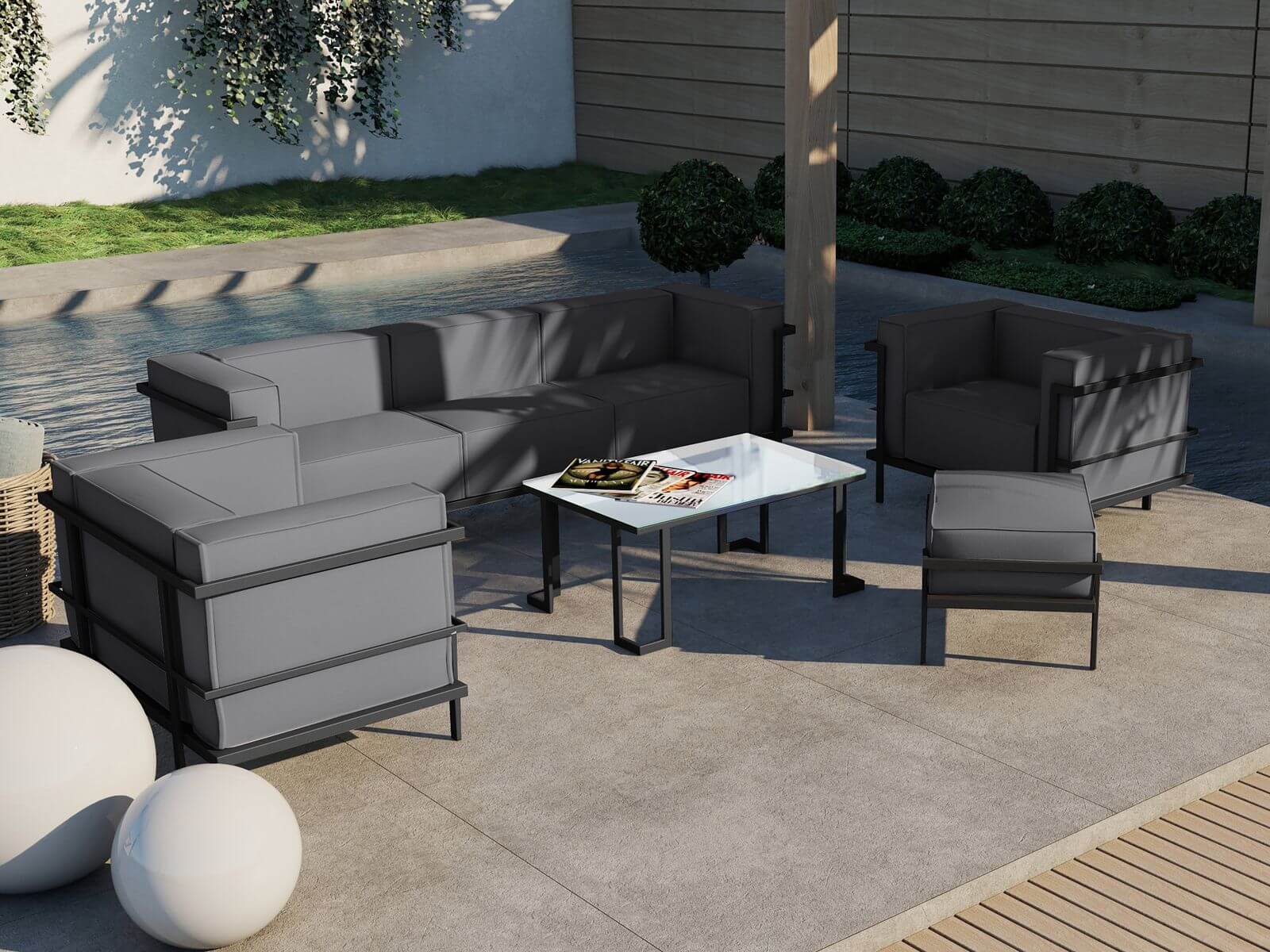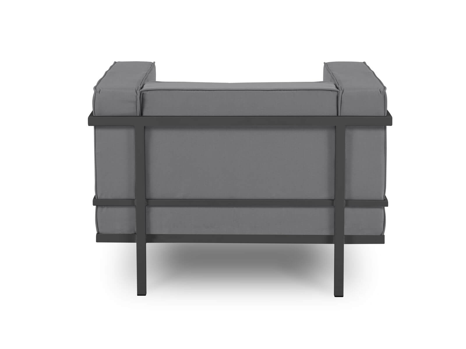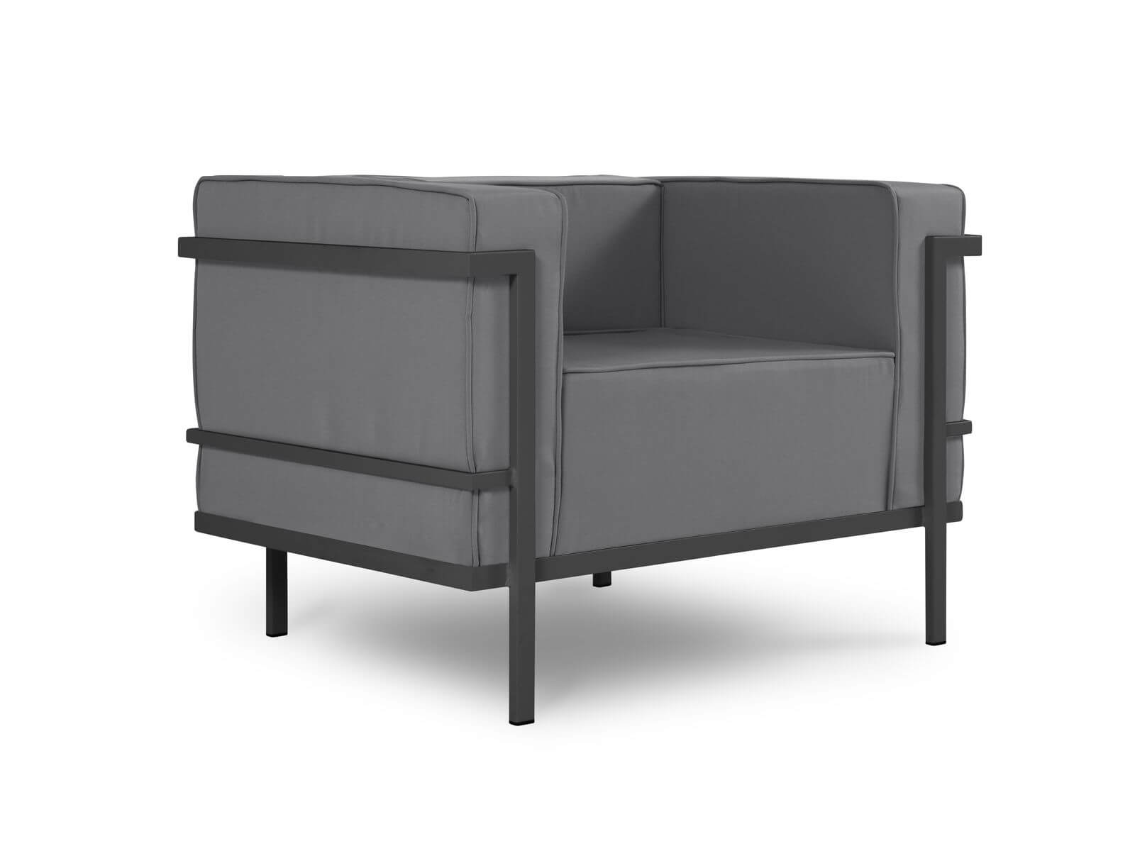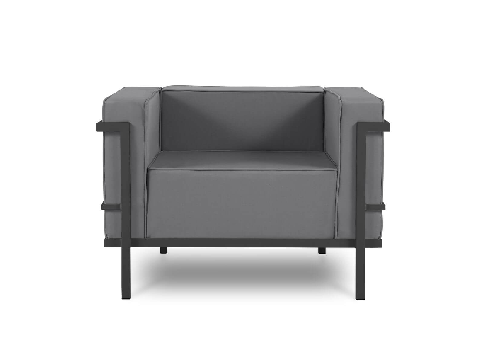 Fotel ogrodowy Cannes w ciemno szarym odcieniu z metalową czarną ramą. Mebel wypoczynkowy w nowoczesnym stylu na Twój taras i balkon.