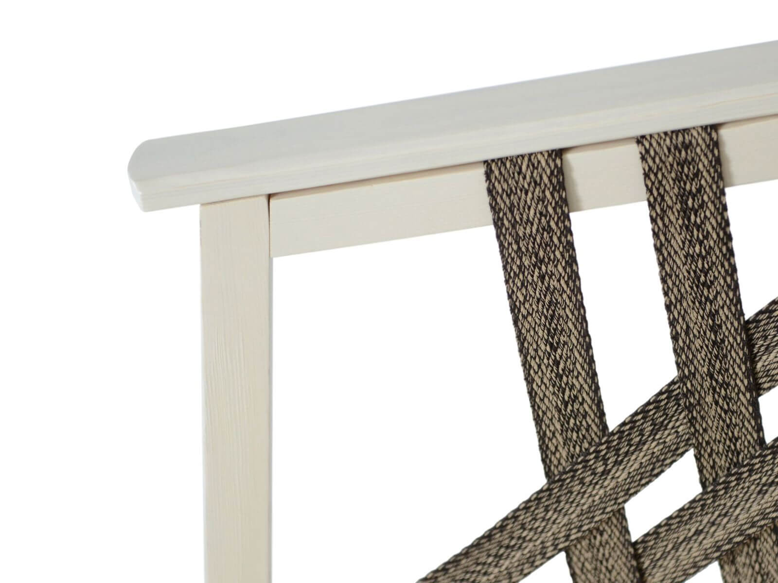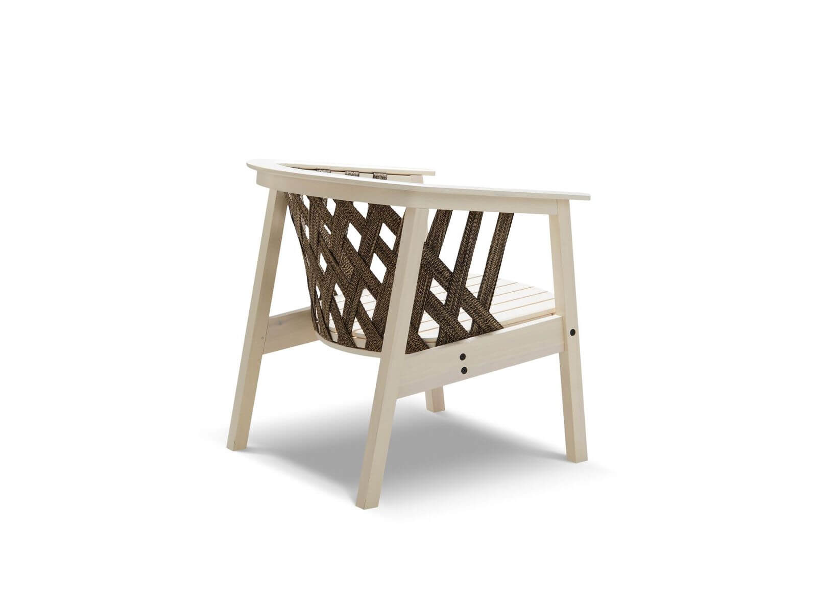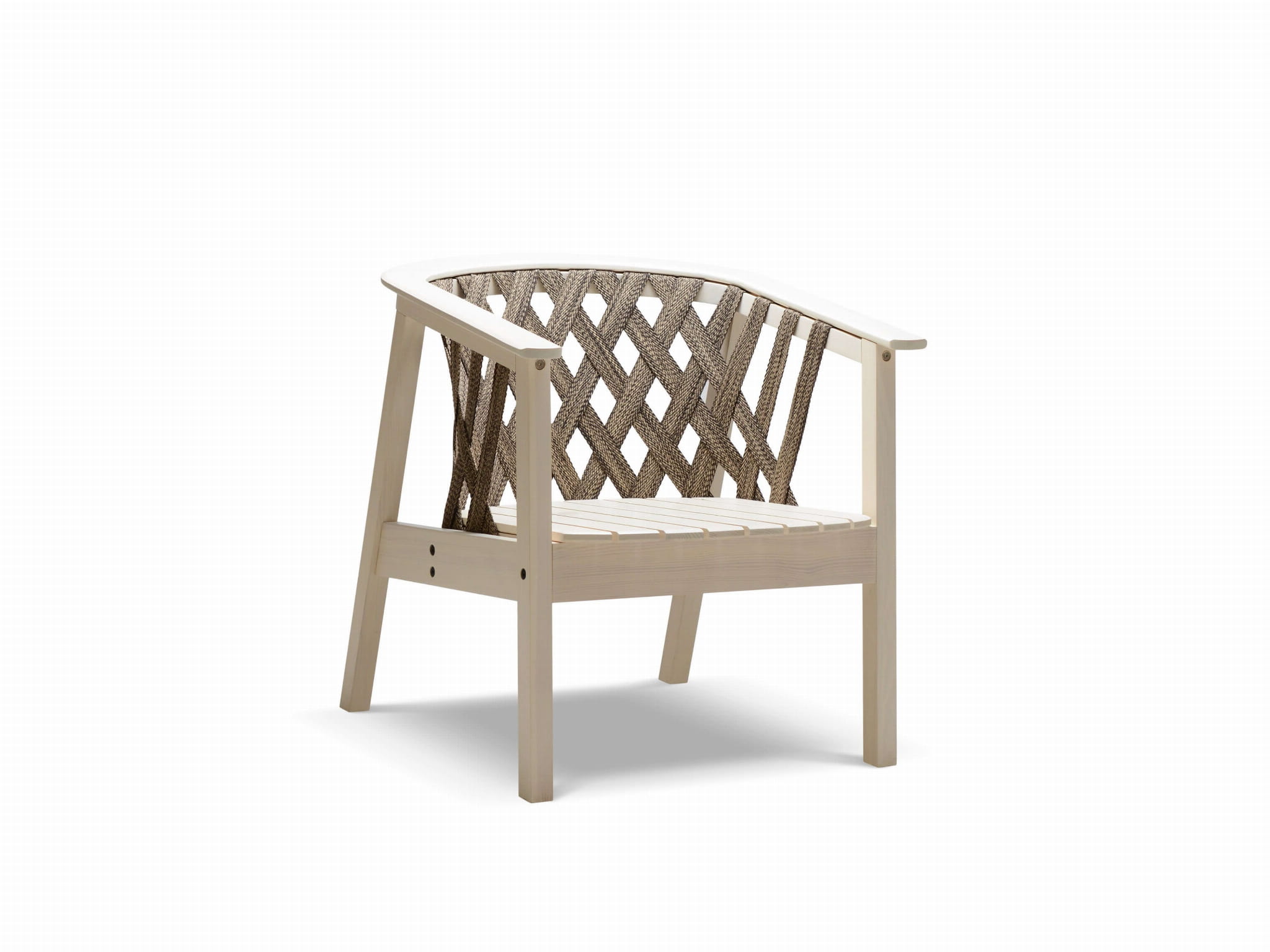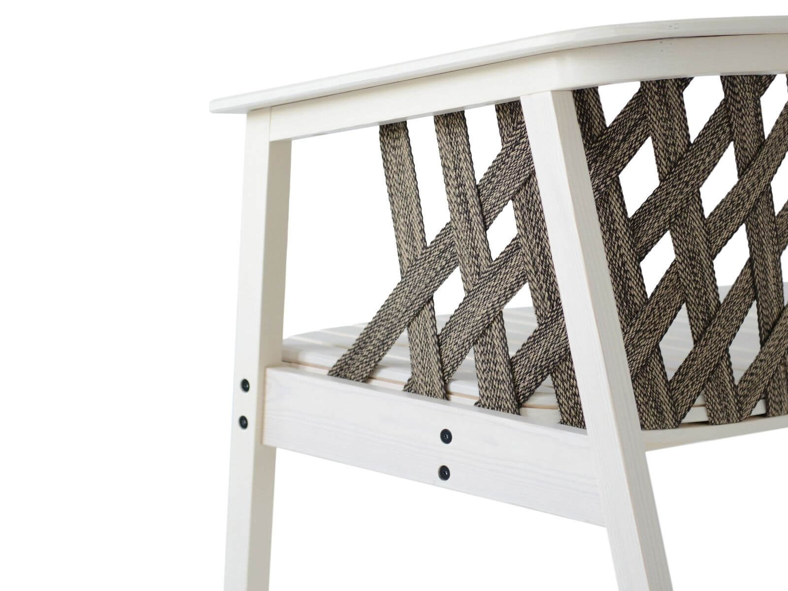 Konstrukcja fotela ogrodowego została wykonana z drewna jesionowego. Oparcie stanowi splot liny, odpornej na warunki atmosferyczne.
