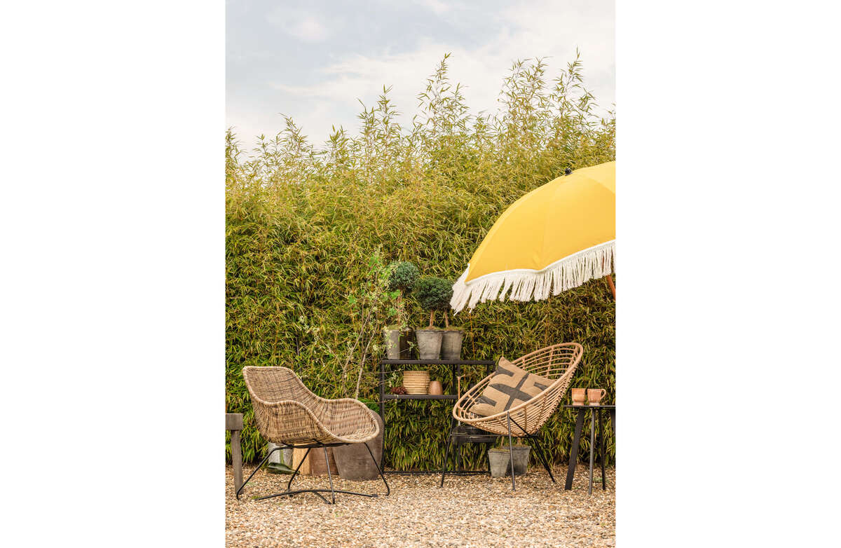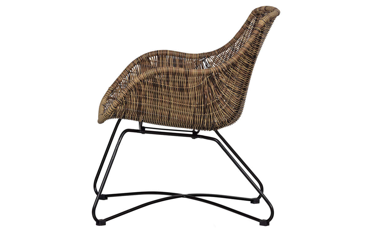 Fotel Frankie to prosty design w ciepłym klimacie boho, składający się z plecionego siedziska na smukłych, metalowych płozach. Fotel pochodzi z outdoorowej kolekcji renomowanej holenderskiej marki WOOOD.