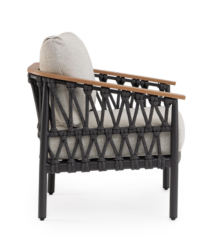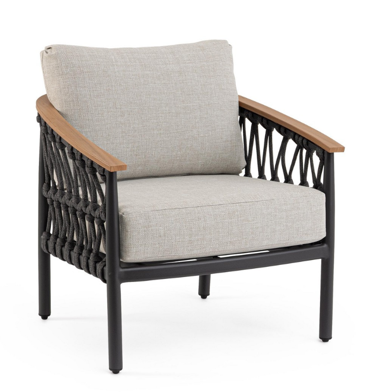 Kompaktowy format fotela sprawia, że idealnie odnajdzie się on zarówno jako samodzielny mebel wypoczynkowy, jak i element większego zestawu na tarasie czy patio. Projekt od cenionej włoskiej marki Bizzotto został wyposażony w regulowane stopki, pozwalające na jego idealne wypoziomowanie na każdej nawierzchni.