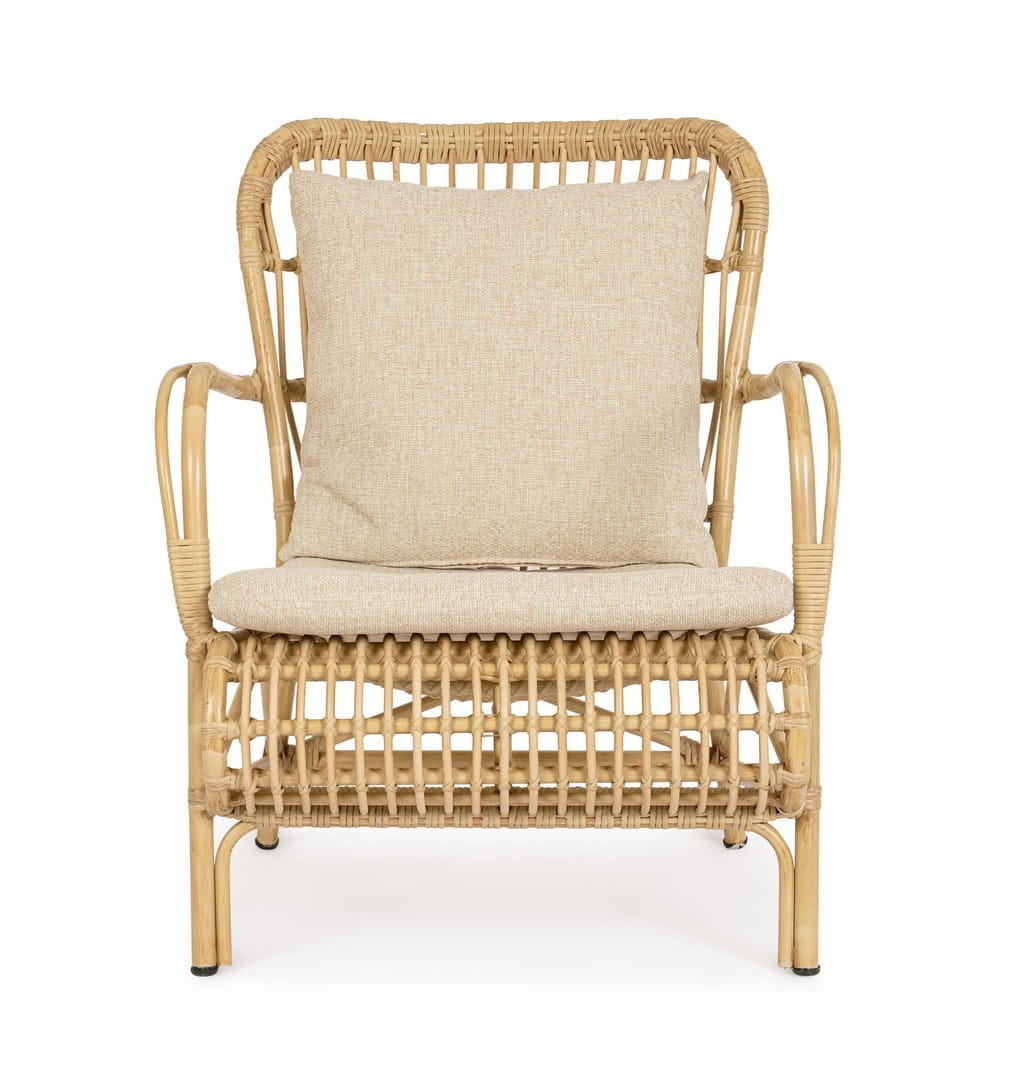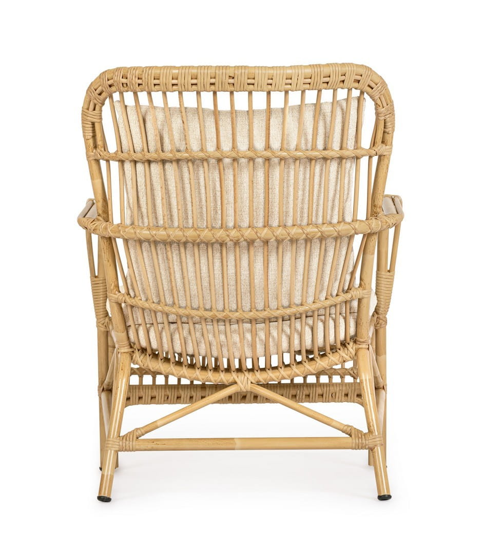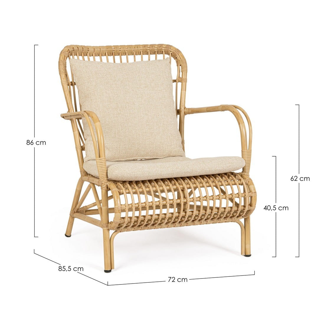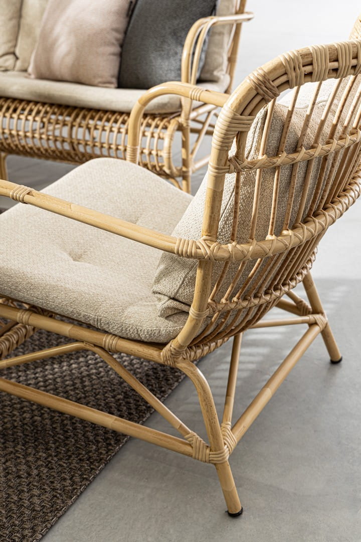 Fotel ogrodowy Florisel to zaproszenie do wypoczynku w stylu boho, gdzie naturalna estetyka spotyka się z nowoczesną technologią. Jego przestronna forma i miękkie poduchy gwarantują wygodę, a wykończenie z efektem rattanu nadaje mu lekki, wakacyjny charakter. Siedzisko i oparcie wykonano z syntetycznego włókna, tworząc zaokrąglone linie i dekoracyjne sploty w ciepłym odcieniu. Florisel idealnie odnajduje się zarówno w domowym ogrodzie, jak i na tarasie w stylu beach house.