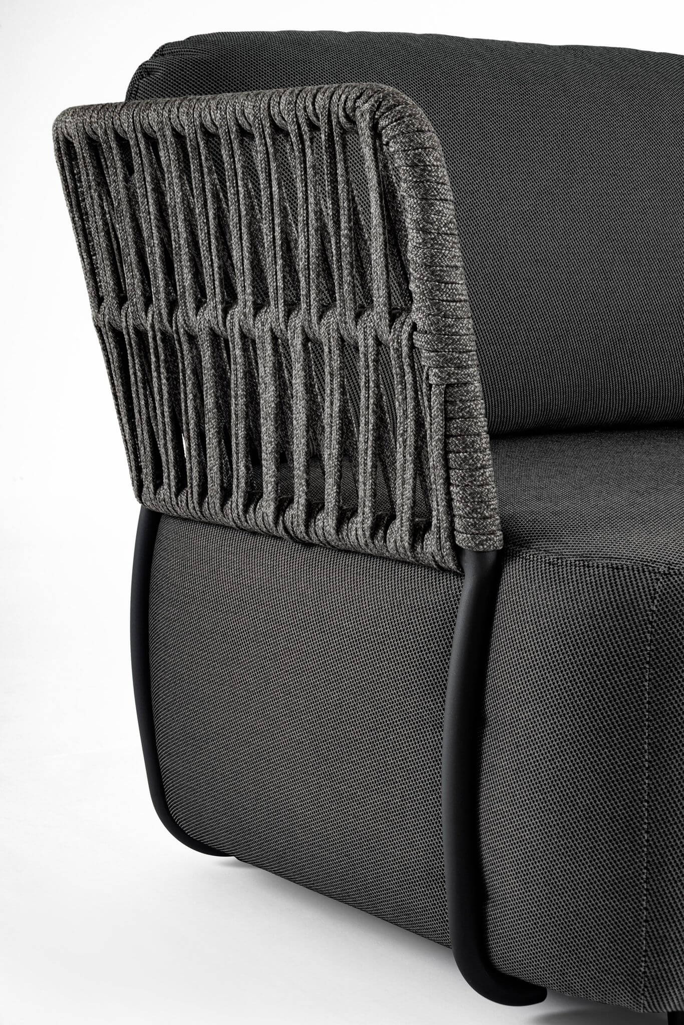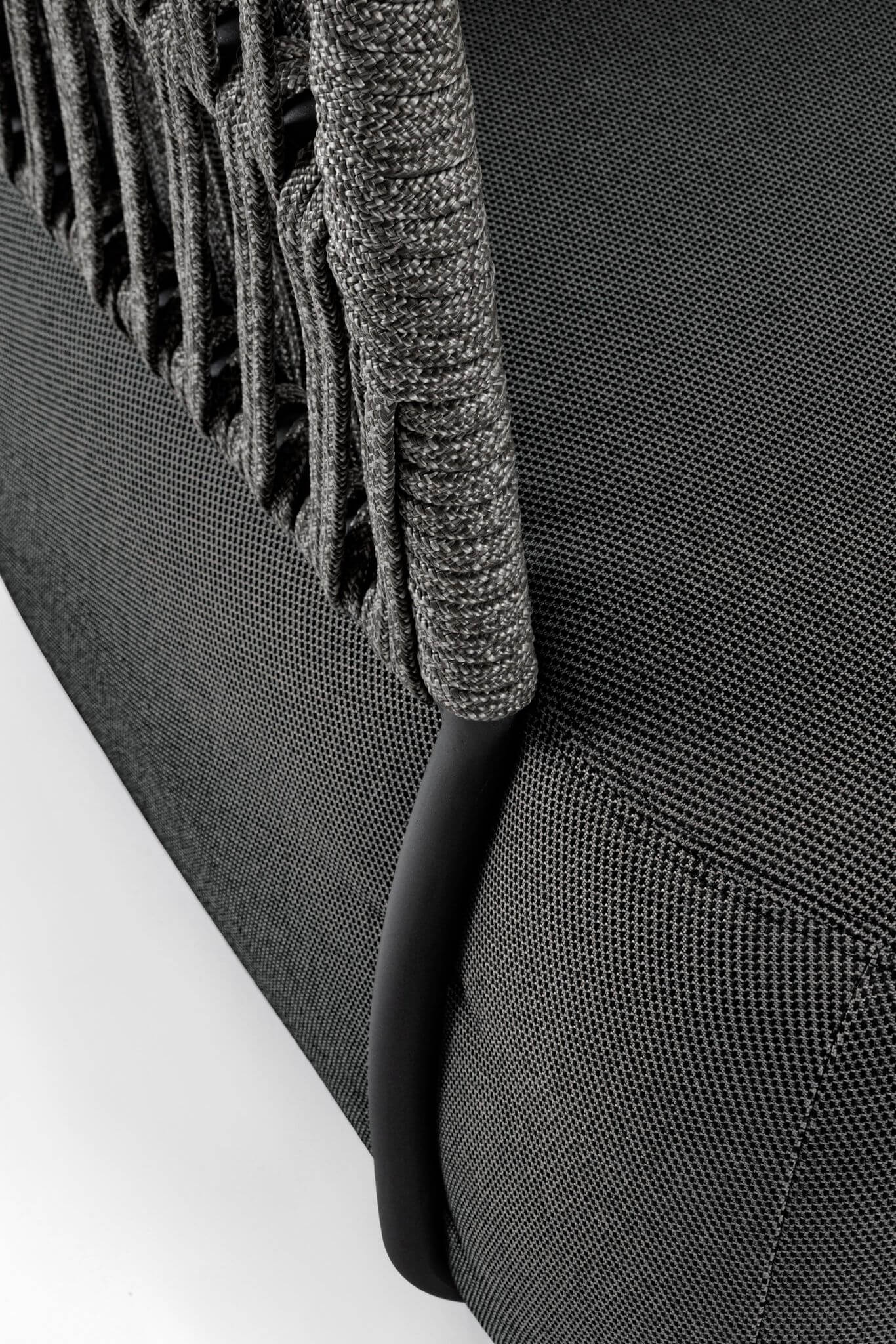 Plecionka wykonana z olefinowej tkaniny dodaje fotelowi oryginalnego uroku.