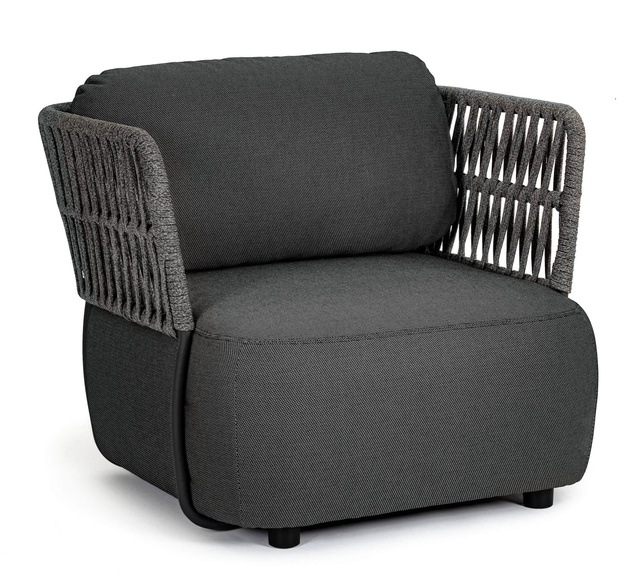 Antracytowy fotel ogrodowy Palmer to elegancki i wygodny mebel, idealny do relaksu na świeżym powietrzu.