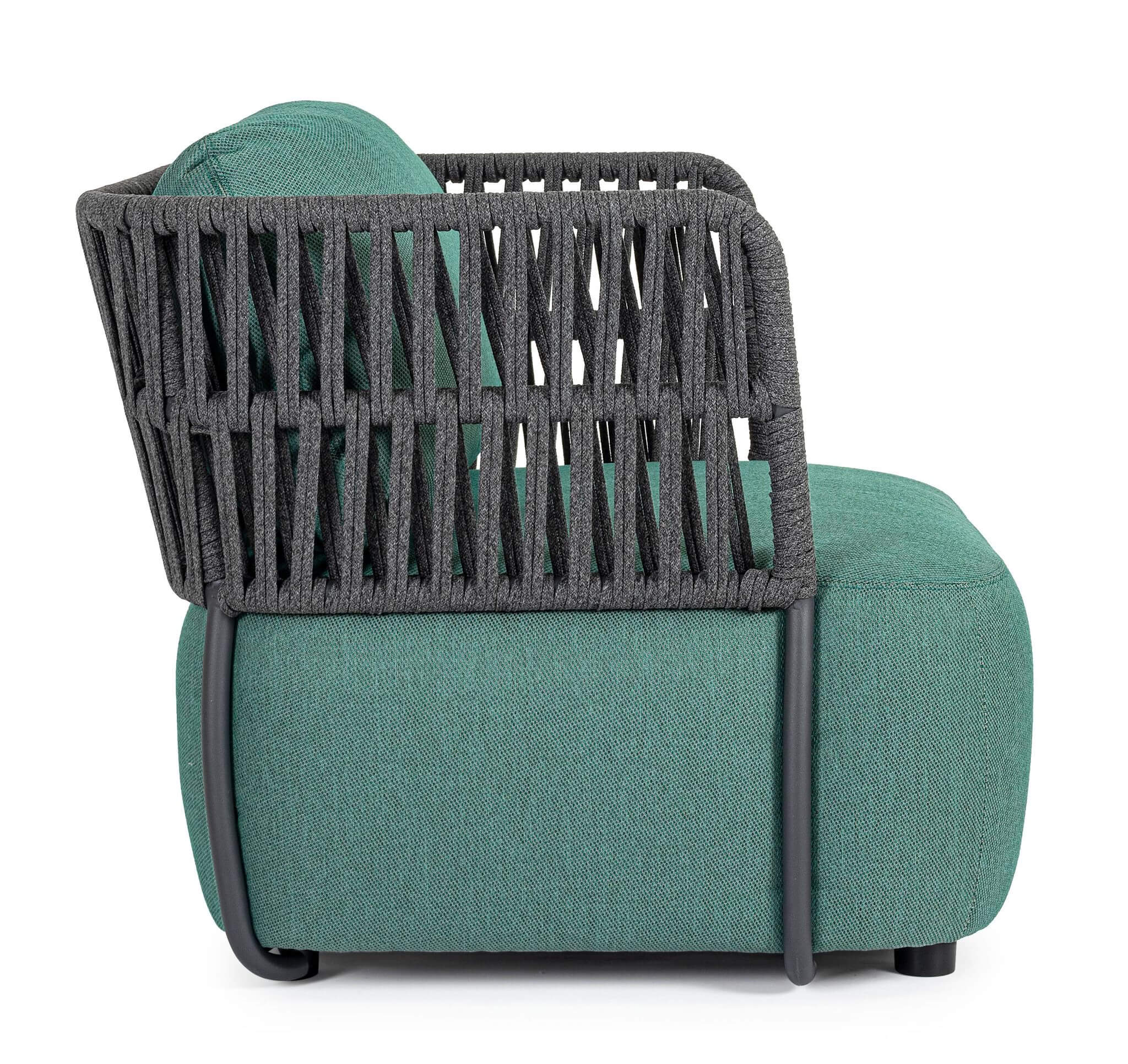 Posiada ramę wykonaną z aluminium, pokrytą proszkowo dla zwiększenia odporności na warunki atmosferyczne. Siedzisko ma wodoodporne wypełnienie, a obicie wykonane jest z olefiny o gramaturze 285g/m2, odpornej na promieniowanie UV.