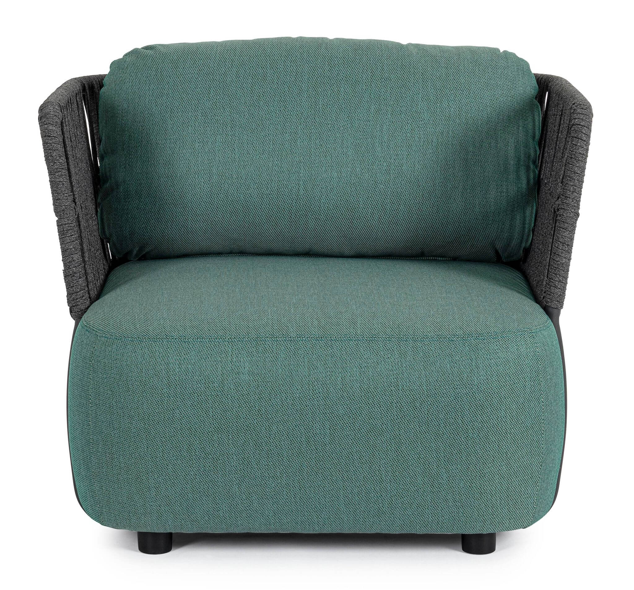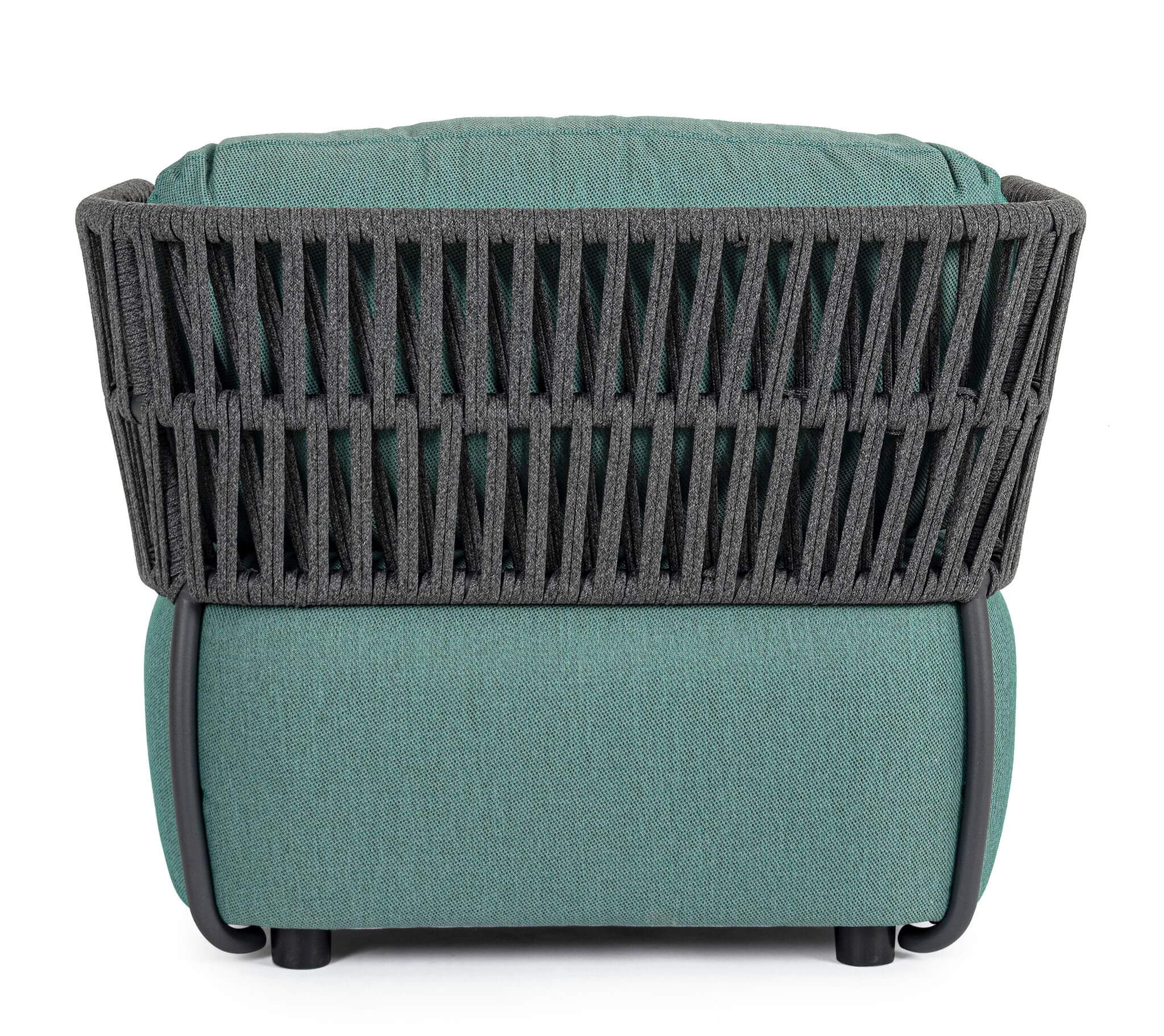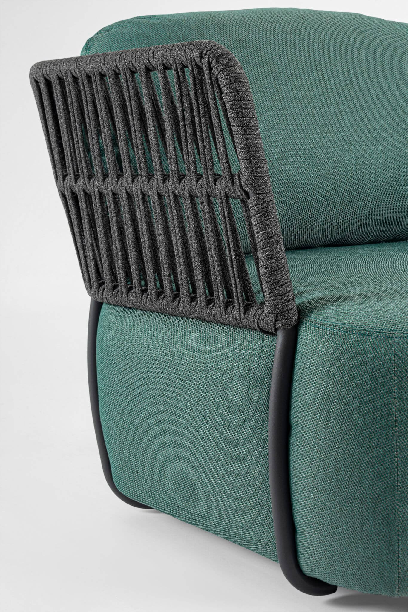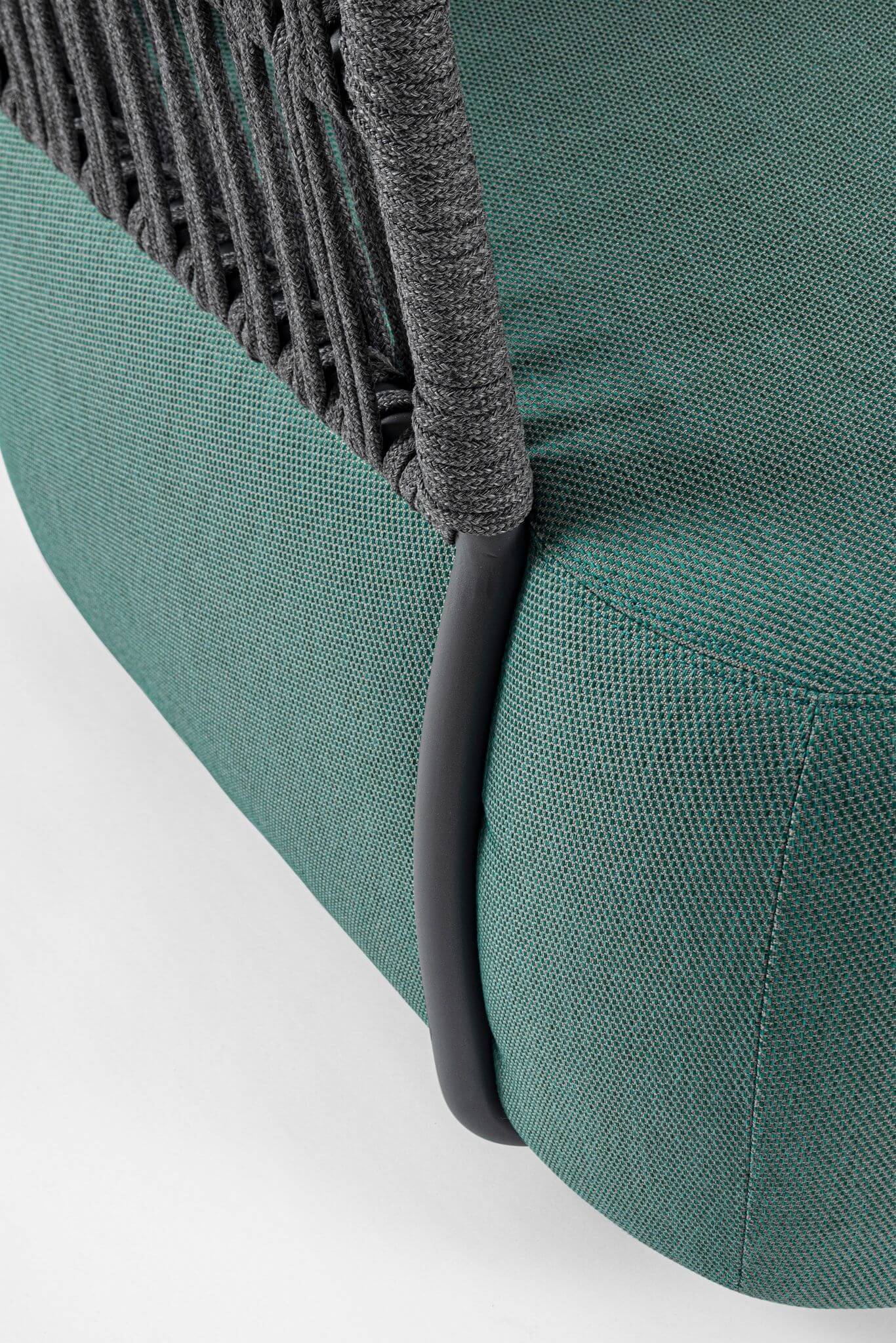 Antracytowa plecionka wykonana z olefinowej tkaniny dodaje fotelowi oryginalnego uroku.