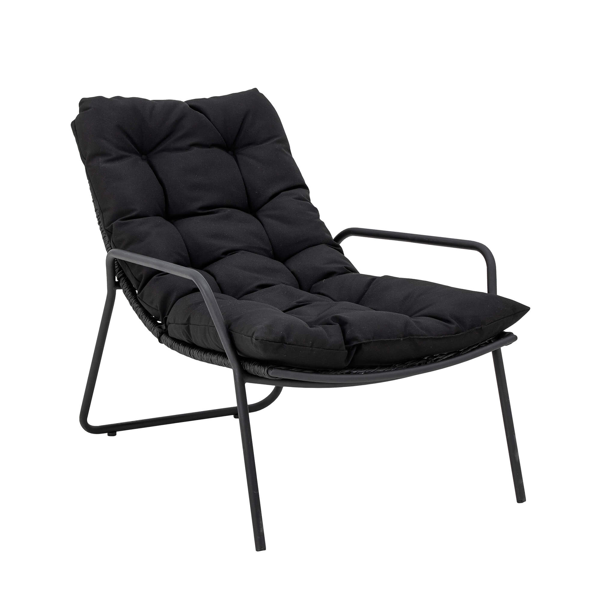 Czarny fotel ogrodowy z poduszką i podnóżkiem Boel Bloomingville