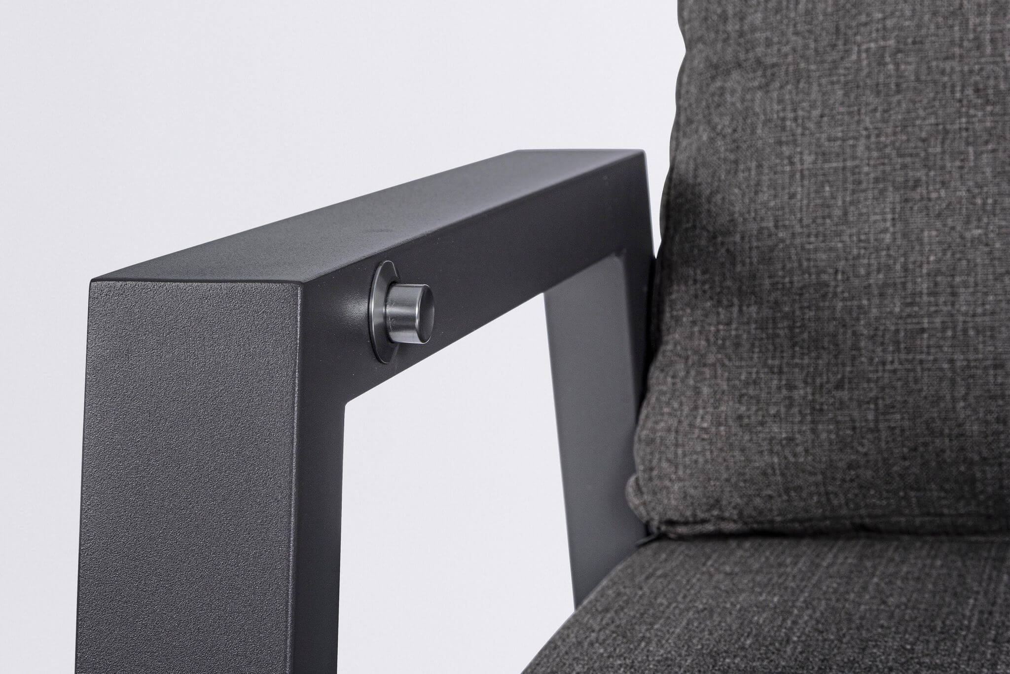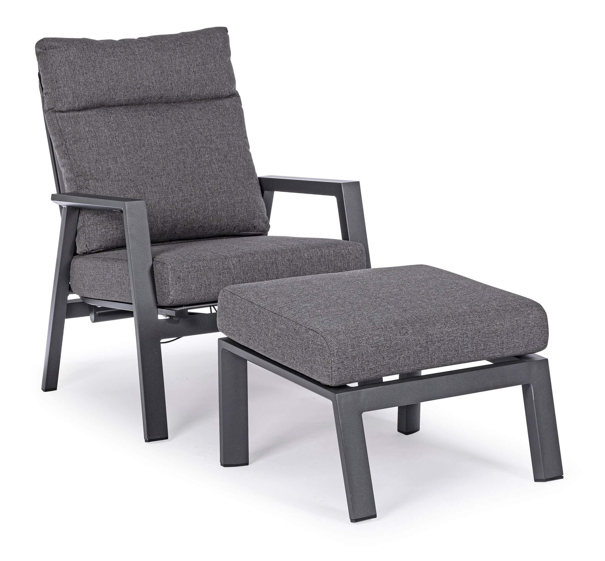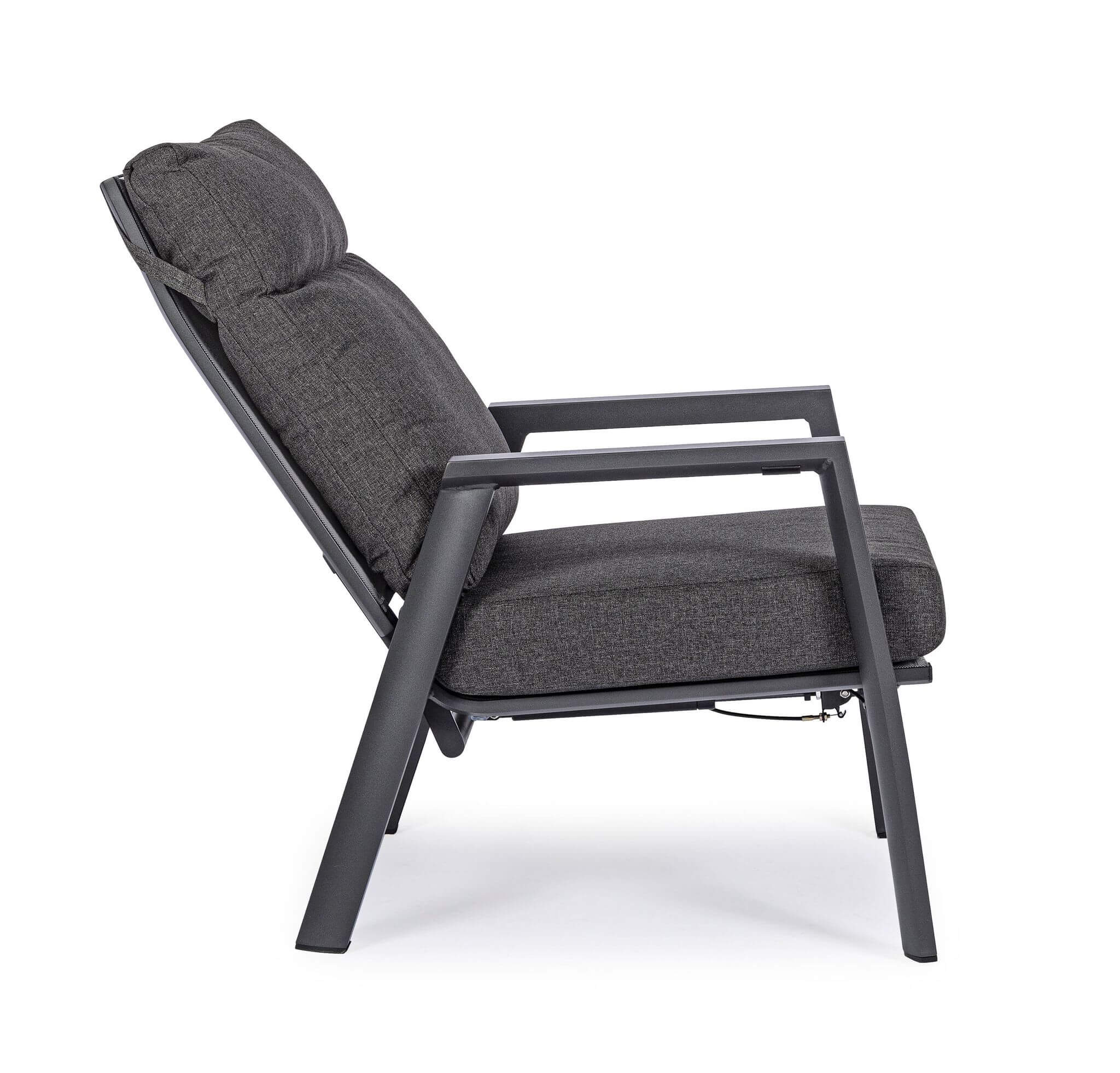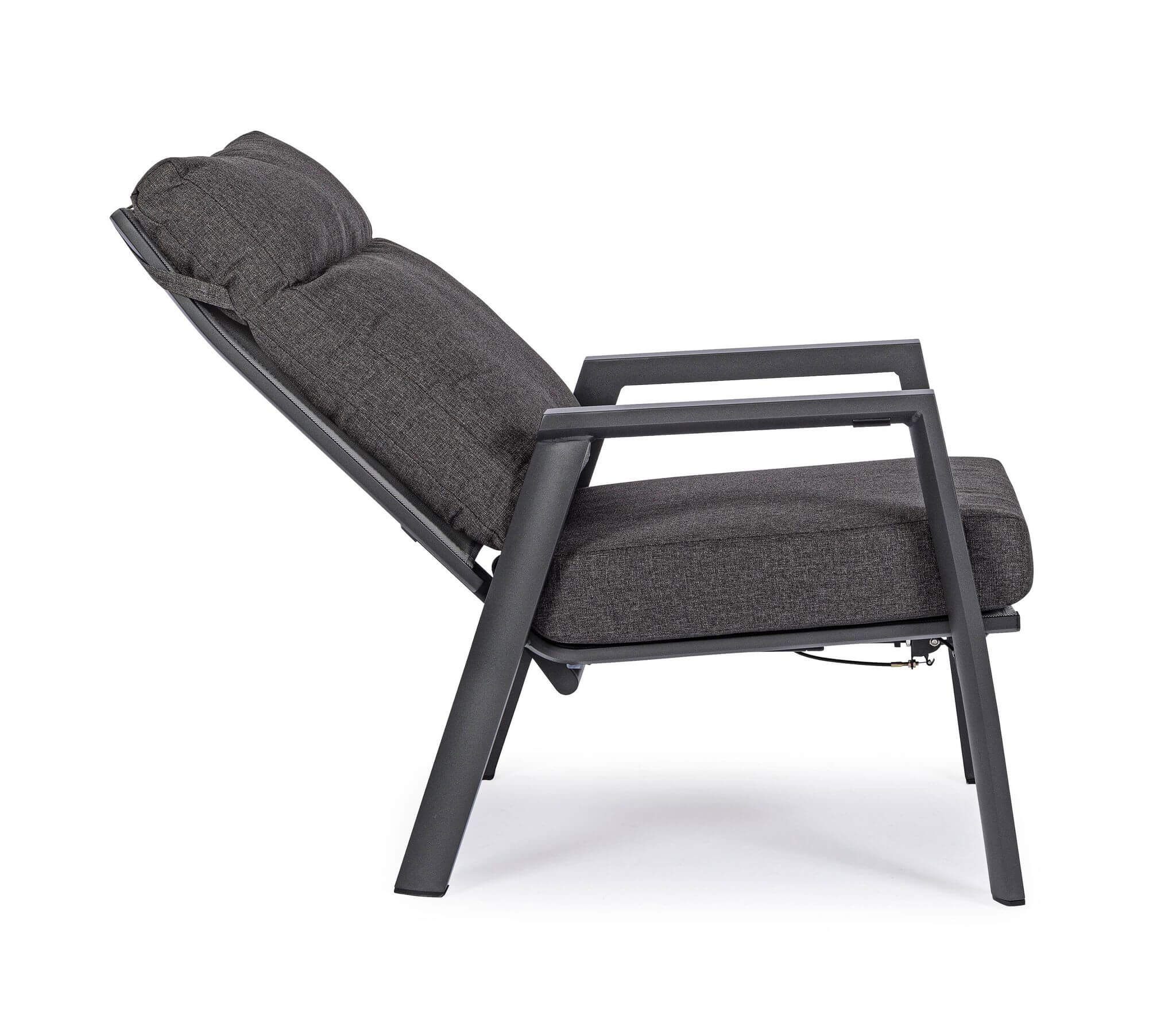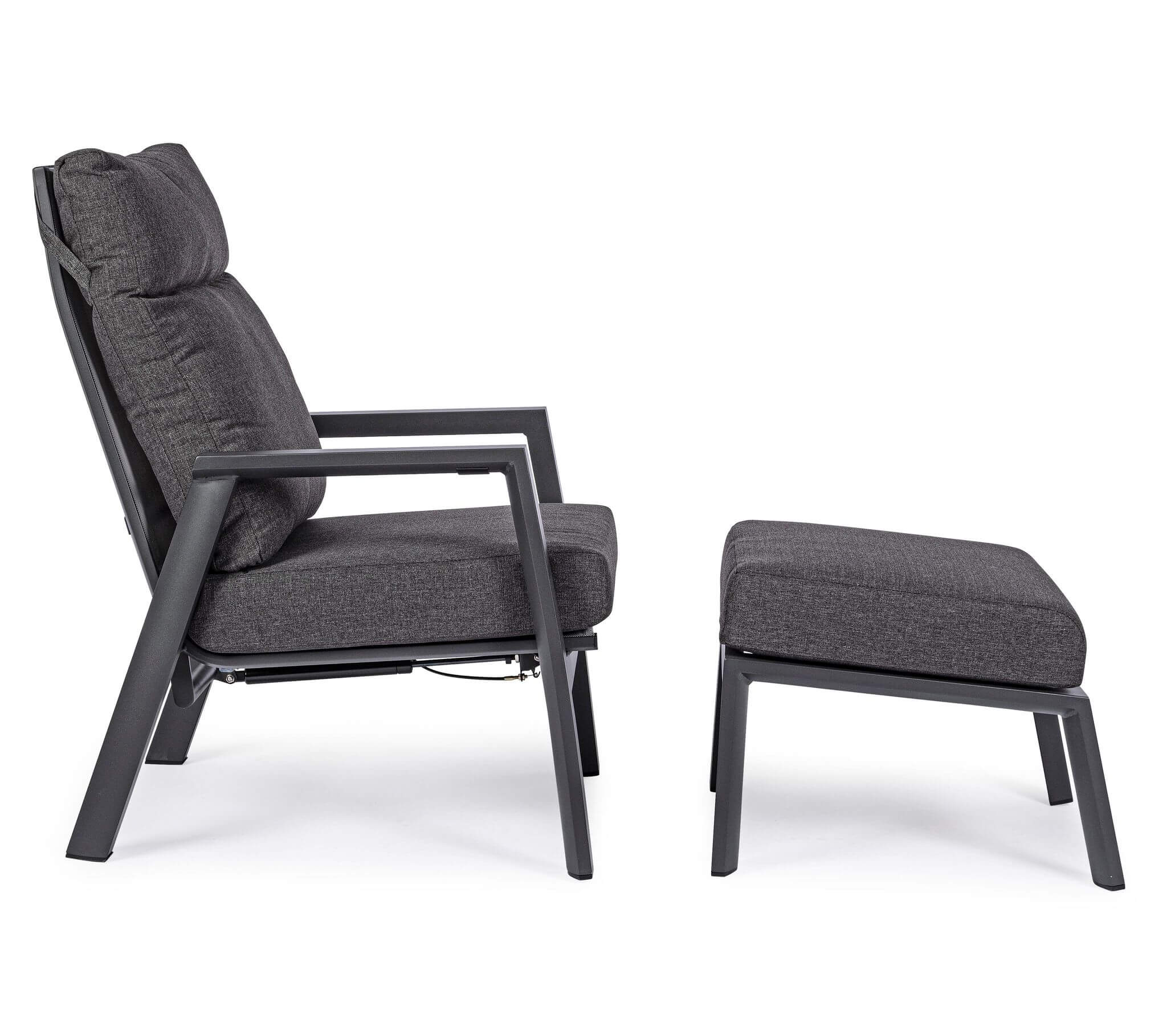 Prezentujemy wyjątkowy, antracytowy fotel z podnóżkiem do ogrodu Kledi, który oprócz stylowego wyglądu, wyróżnia się regulacją oparcia. Projektu włoskiej marki Bizzotto.
