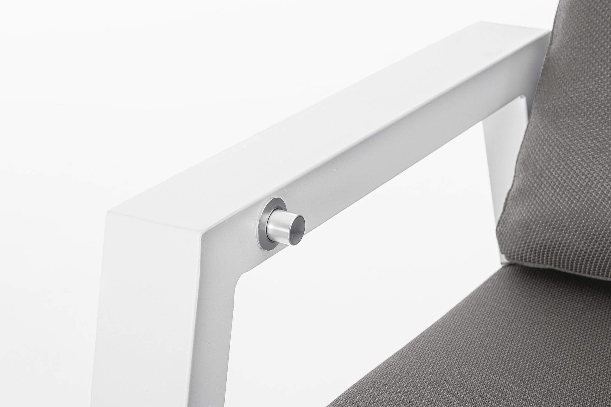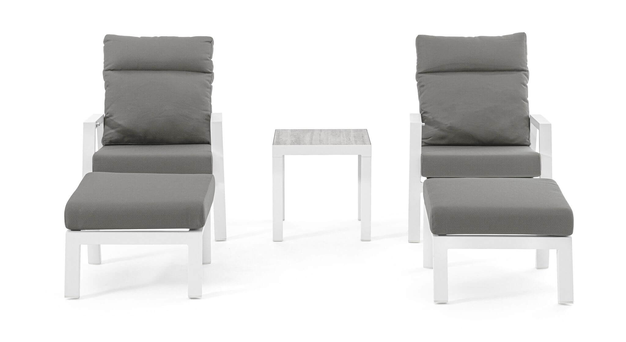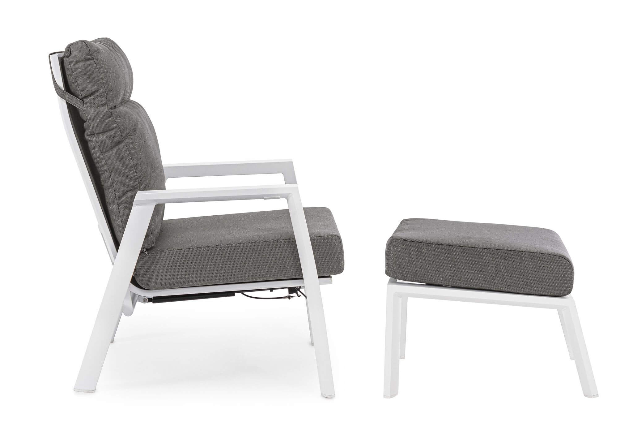 Prezentujemy wyjątkowy, szary fotel z podnóżkiem do ogrodu Kledi, który oprócz stylowego wyglądu, wyróżnia się regulacją oparcia. Projektu włoskiej marki Bizzotto.