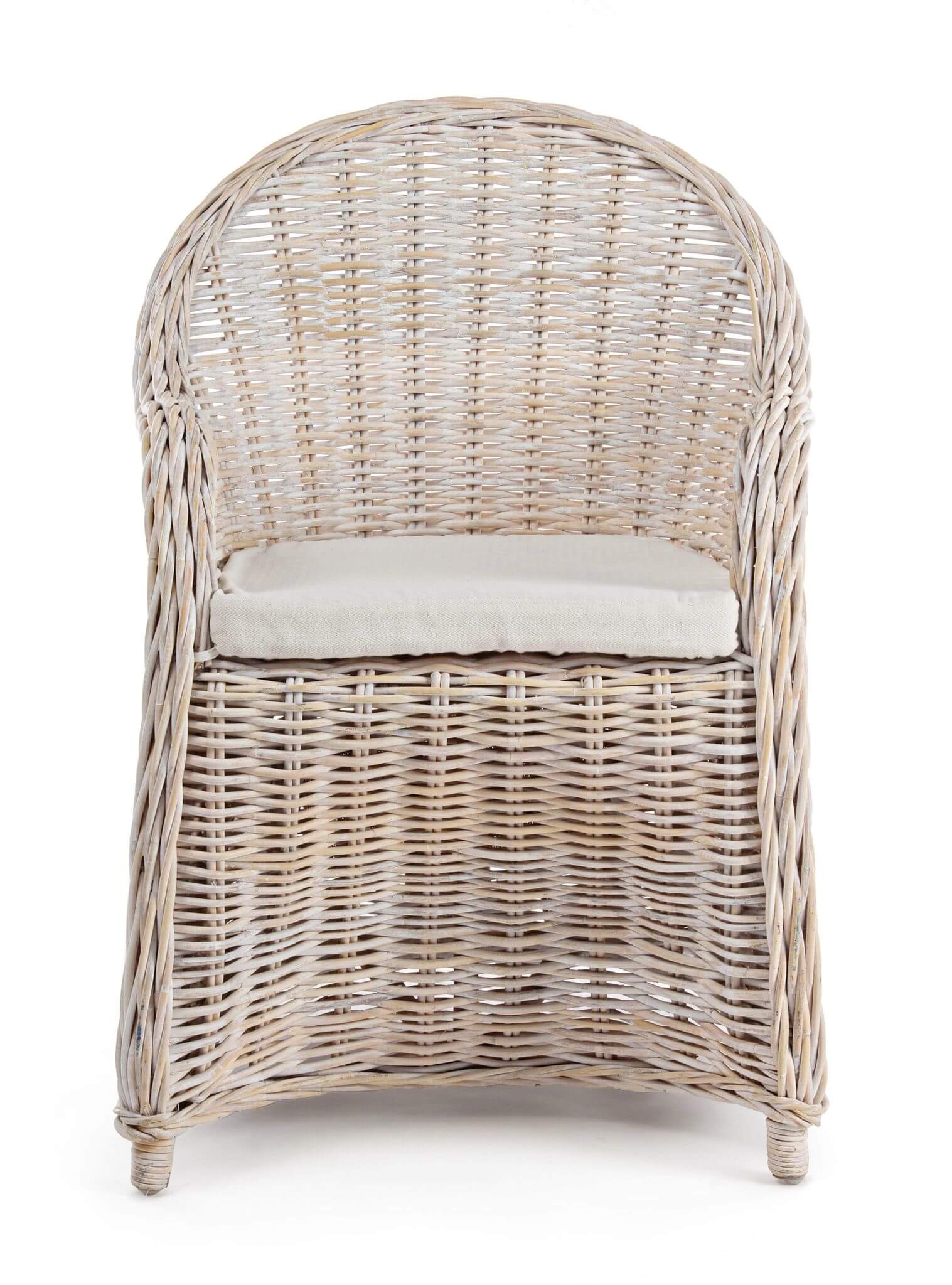 Pełen uroku jasny fotel ogrodowy wykonany z rattanu - doda tarasowi wyjątkowego stylu i przytulności. Projektu włoskiej marki Bizzotto.