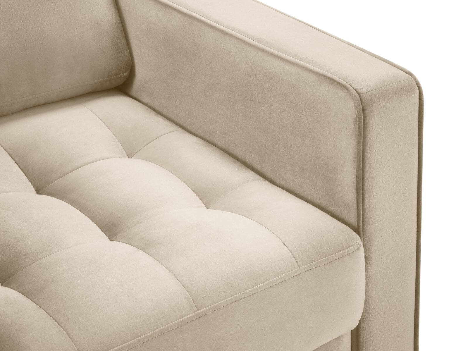 Ponadczasowe pikowanie oraz nóżki w złotym kolorze sprawiają, że fotel emanuje elegancją. Beżowy, wygodny fotel świetnie sprawdzi się w domowym salonie, sypialni, gabinecie w stylu nowoczesnym czy klasycznym. Świetnie zaprezentuje się w towarzystwie innych mebli z kolekcji Santo.