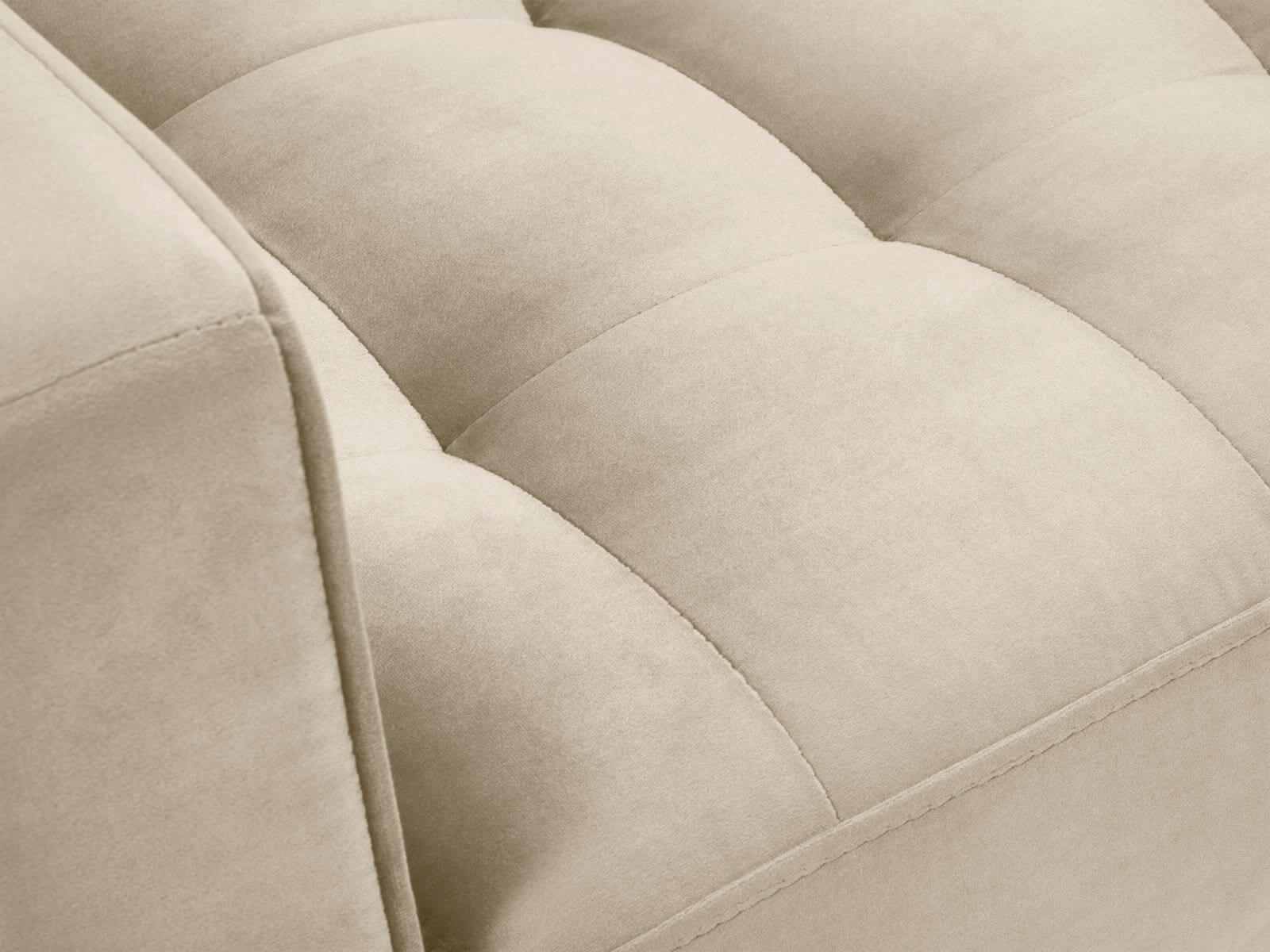 Mebel jest tapicerowany przyjemnym aksamitem Salvador z lekkim połyskiem i krótkim włosiem. Ta wysokiej jakości tkanina jest odporna na ścieranie, a zastosowana na niej technika LiquidBlocked powoduje, że wylany płyn gromadzi się na powierzchni, nie wnikając w głąb włókien.