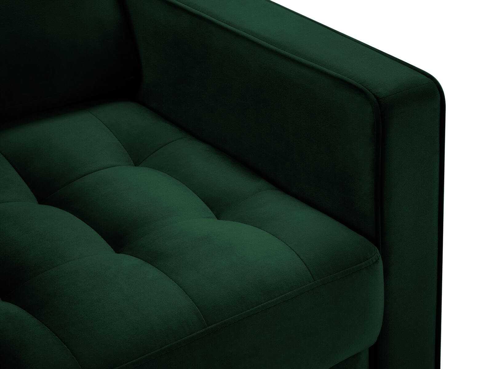 Ponadczasowe pikowanie oraz nóżki w złotym kolorze sprawiają, że fotel emanuje elegancją. Stylowy fotel w kolorze butelkowej zieleni świetnie sprawdzi się w domowym salonie, sypialni, gabinecie w stylu nowoczesnym czy urban jungle. Świetnie zaprezentuje się w towarzystwie innych mebli z kolekcji Santo.