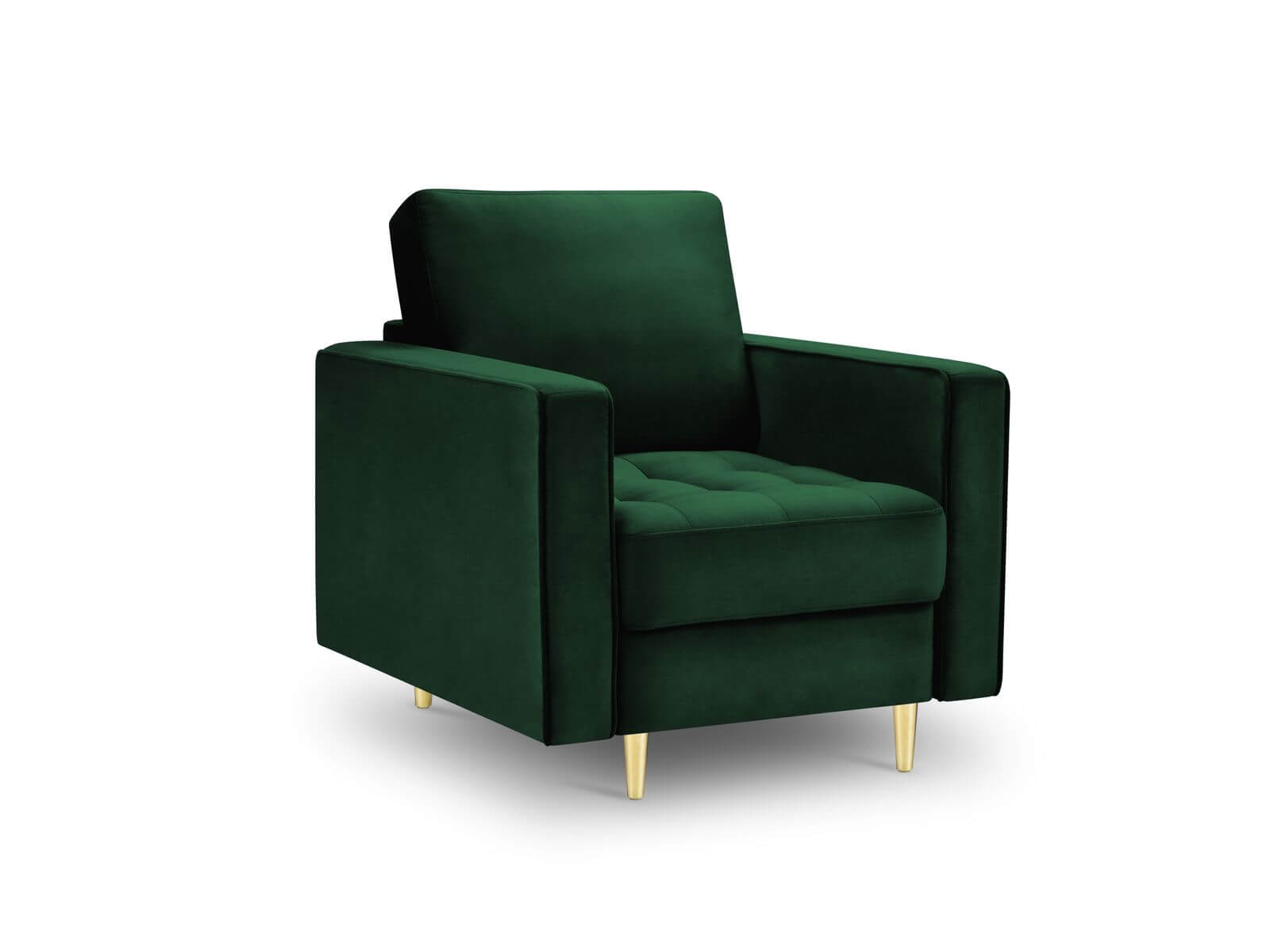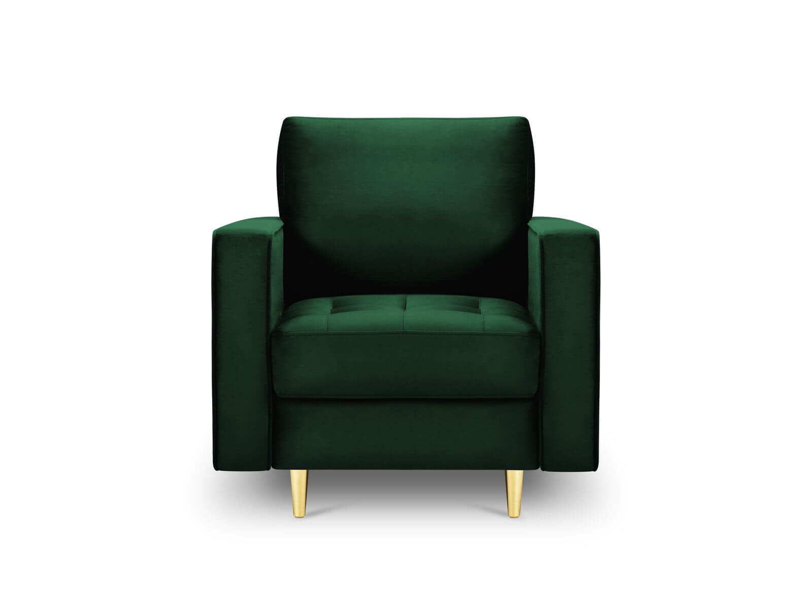Fotel pikowany Santo butelkowa zieleń na złotych nóżkach