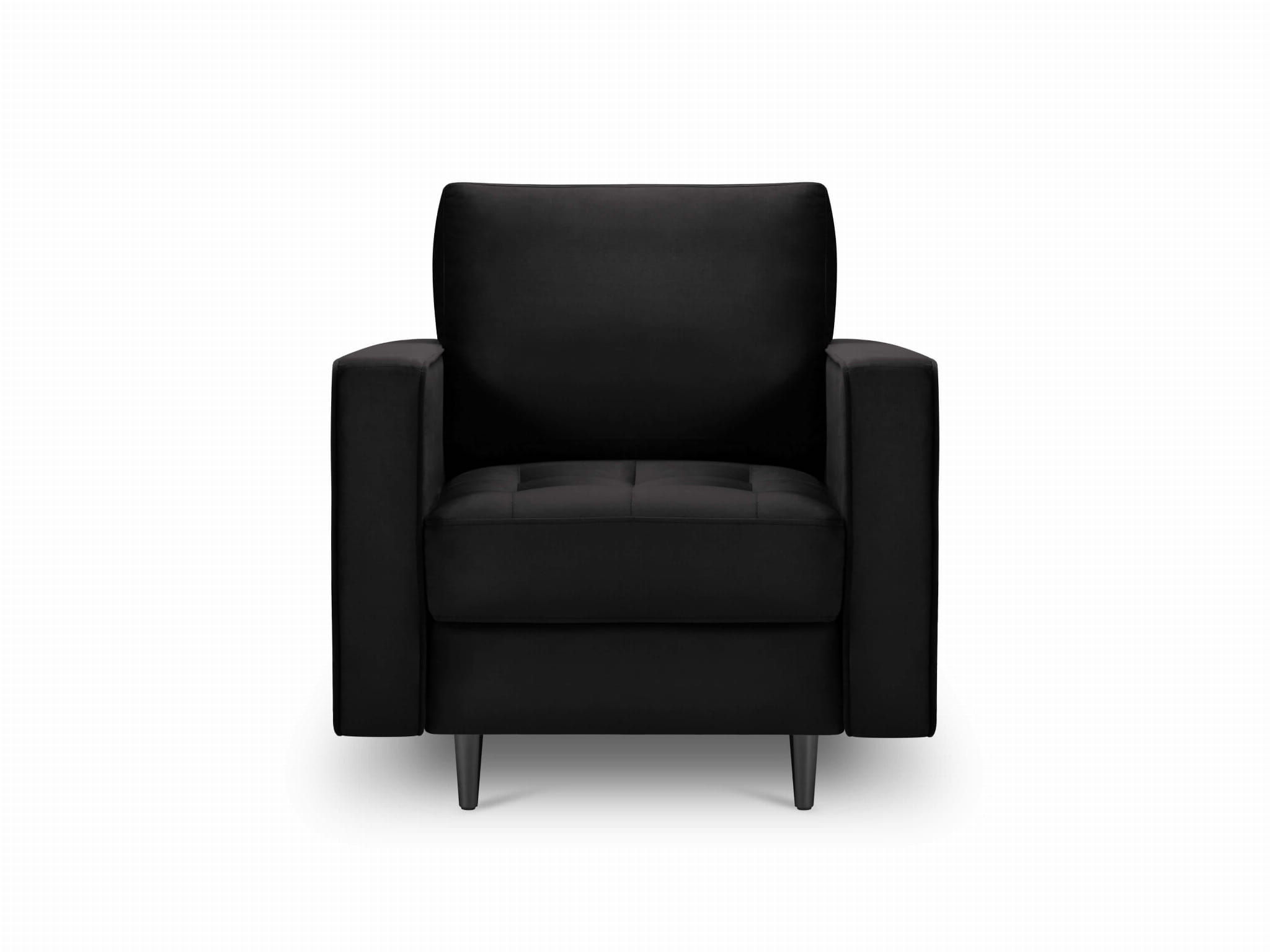 Ponadczasowe pikowanie oraz nóżki w czarnym kolorze sprawiają, że fotel emanuje elegancją. Czarny, stylowy fotel świetnie sprawdzi się w domowym salonie, sypialni, gabinecie w stylu loftowym, industrialnym. Świetnie zaprezentuje się w towarzystwie innych mebli z kolekcji Santo.