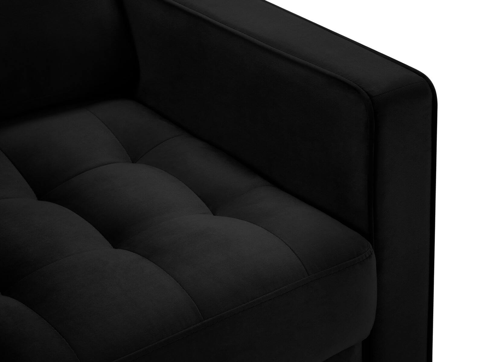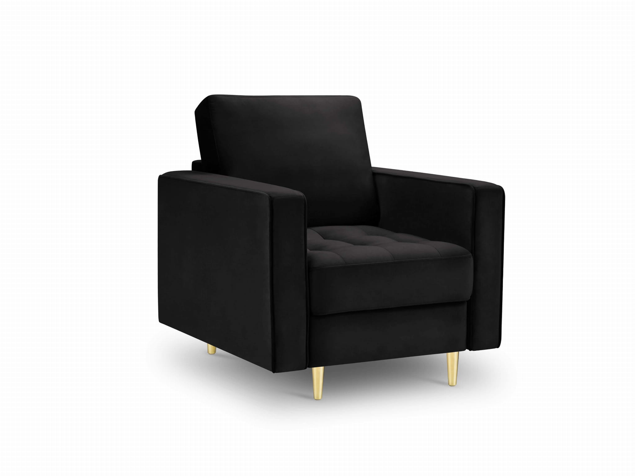 Ponadczasowe pikowanie oraz nóżki w złotym kolorze sprawiają, że fotel emanuje elegancją. Czarny, stylowy fotel świetnie sprawdzi się w domowym salonie, sypialni, gabinecie w stylu nowoczesnym czy eklektycznym. Świetnie zaprezentuje się w towarzystwie innych mebli z kolekcji Santo.