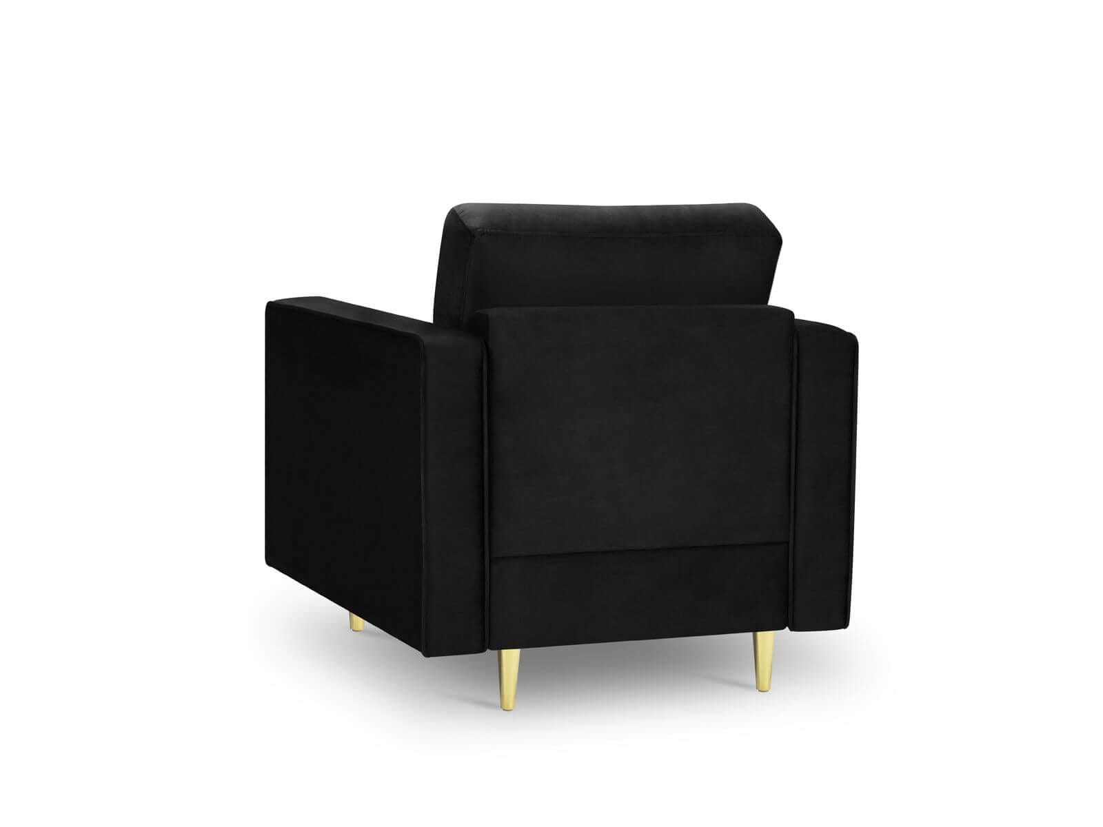 Fotel pikowany Santo aksamit czarny na złotych nóżkach
