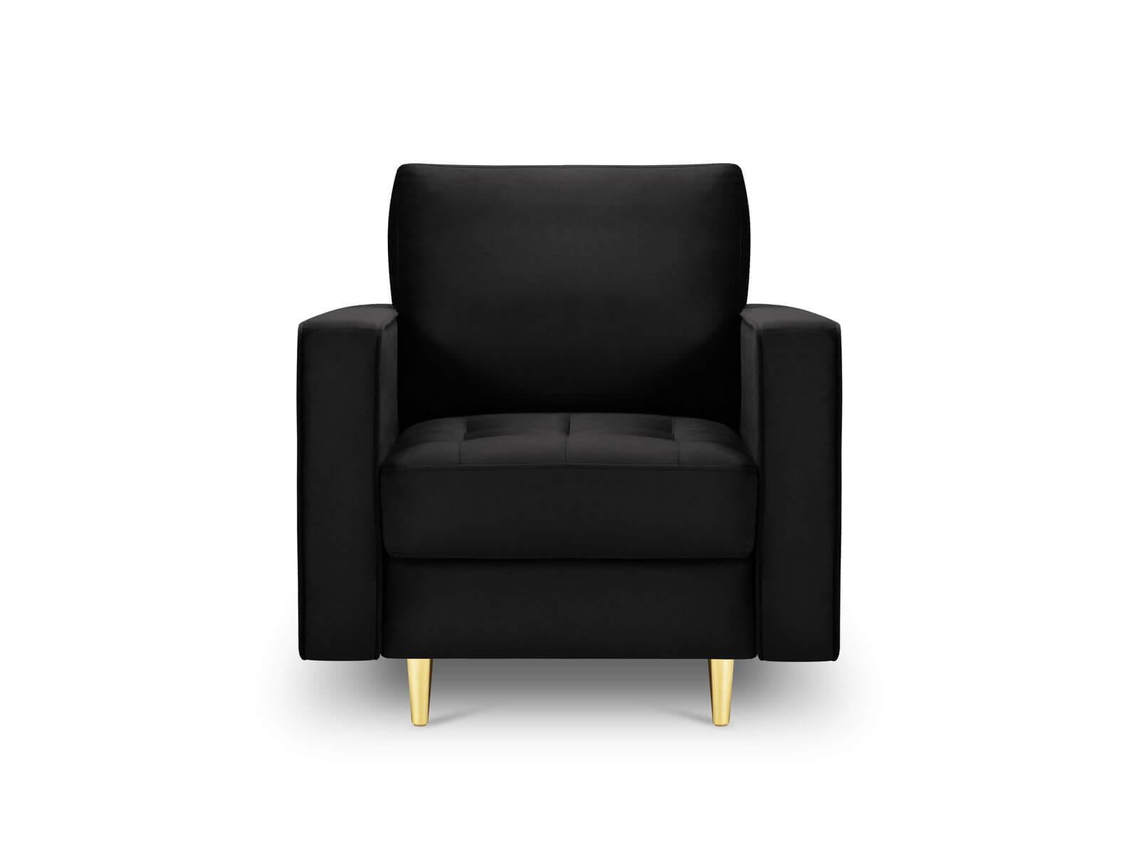 Fotel pikowany Santo czarny na złotych nóżkach